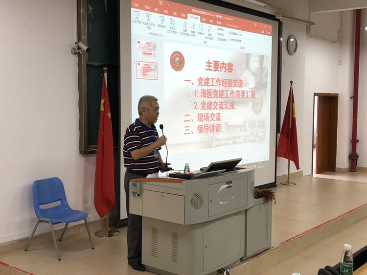 10月22日下午,由省委教育工委、省教育厅主办、中国(海南)改革发展研究院承办的“深入学习贯彻习近平新时代中国特色社会主义思想和党的十九大精神、习近平总书记“4·13”重要讲话精神以及中央12号文件”党员教育专题培训班学员共118人,在省委教育工委办吴名芳科长、培训班班主任孙佳妮带领下到我校开展党建工作现场教学会。现场教学会由党委组织部部长张伟主持,第一临床学院党委副书记张万科、热带医学与检验医学院党委书记郑文芝在会上做抓基层党建工作经验介绍。组织部组织科科长邝敏及第一临床学院相关同志参加了现场教学会。
