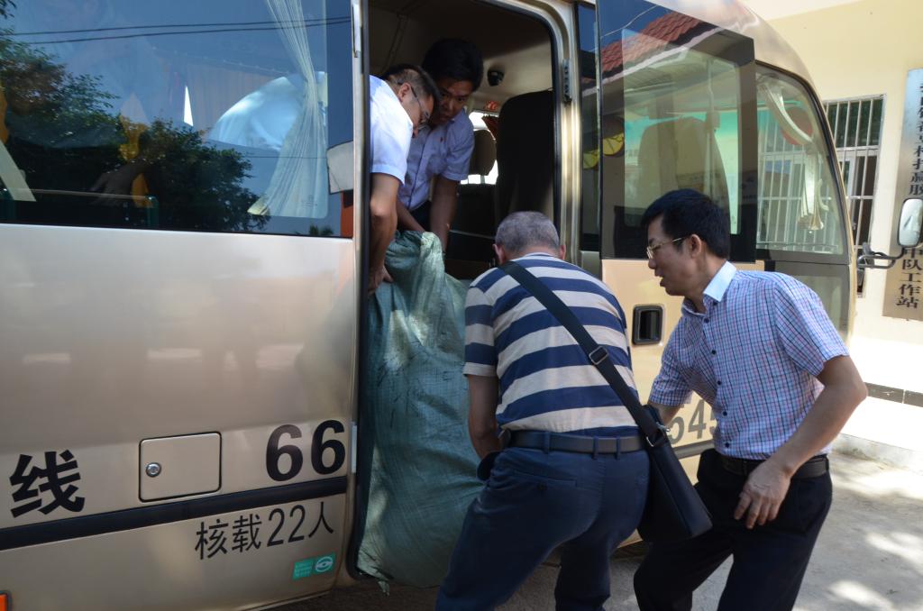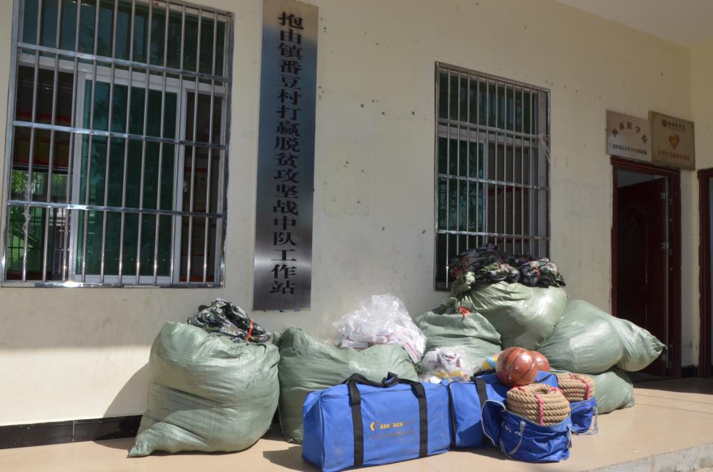 张副校长一行风尘仆仆来到番豆村,不顾舟车劳顿,将师生们捐赠给村民们的衣物、急救用品,以及体育用品卸车。随后,在村委会议室召开了驻村帮扶工作座谈会,先后听取番豆村驻村第一书记王基鸿、成栋村驻村第一书记何和与关于驻村基本情况的介绍,以及扶贫工作开展情况、存在的问题与不足及下一步工作思路的汇报。