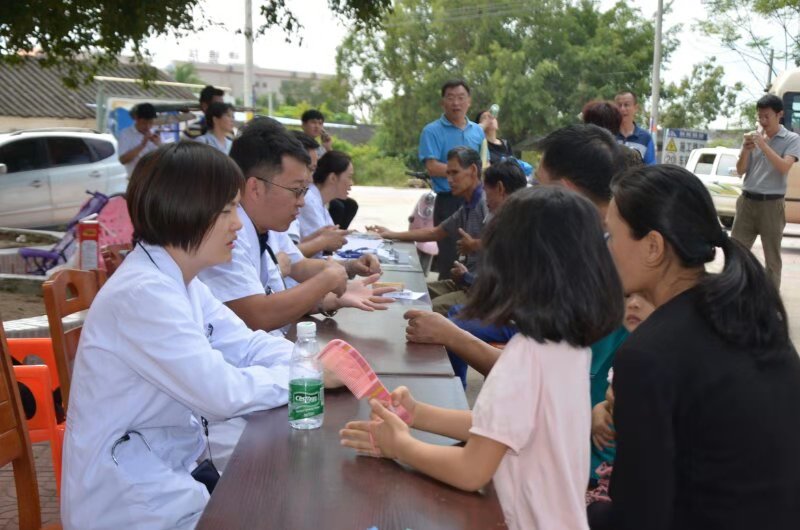 来到番豆村,第一附属医院义诊医疗组不顾舟车劳顿,便在村委会前设点开展义诊活动,同时深入贫困户家中巡诊、分送药品。孙晓宁副校长及其他人员则顶着烈日,在驻村第一书记王基鸿、副书记陈伟聪以及村干部的陪同下,进村入户,查看村卫生室建设情况,对现存药物管理特别是药品有效期、贫困户健康档案管理、村民家庭医生签约覆盖率、因病致贫的病人及一些慢性病病人的规范性治疗和巡诊登记等提出了建议。随后,又紧锣密鼓地深入到种养植基地重点查看了学校支持的黑山羊养殖项目和蔬菜种植项目。