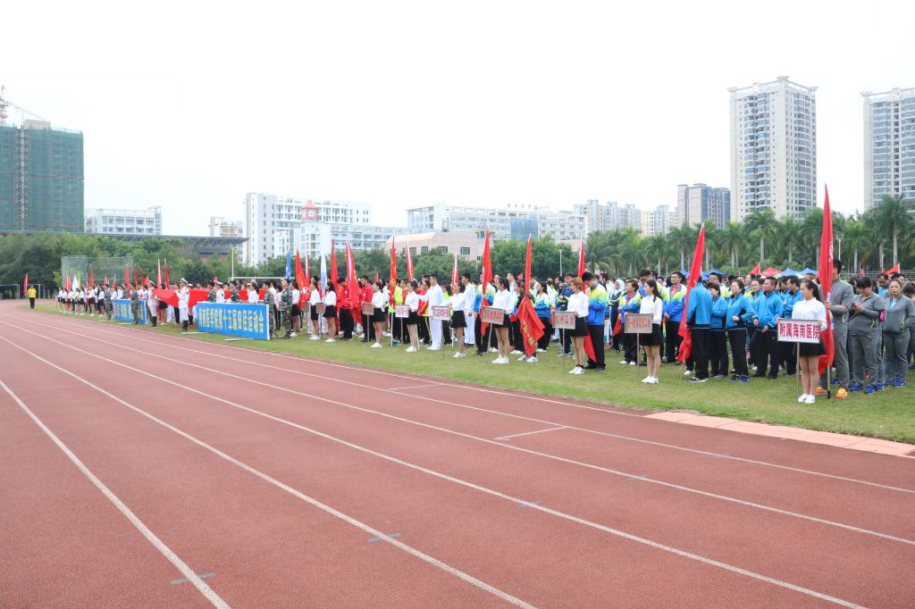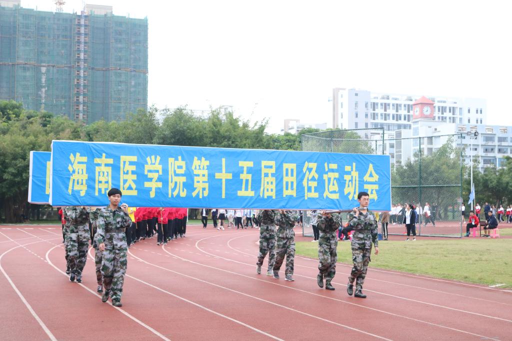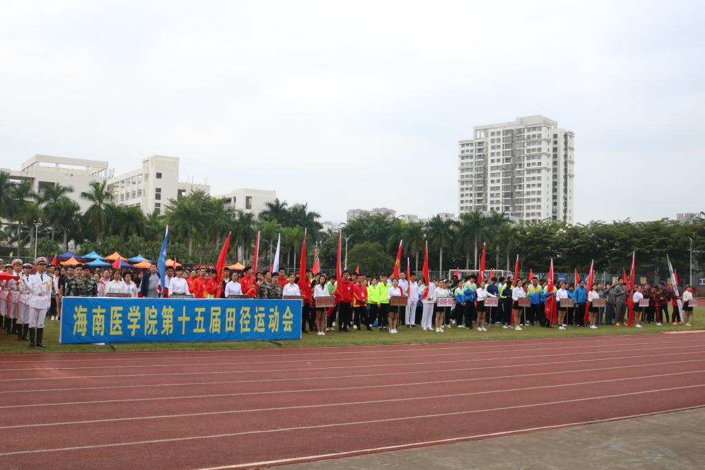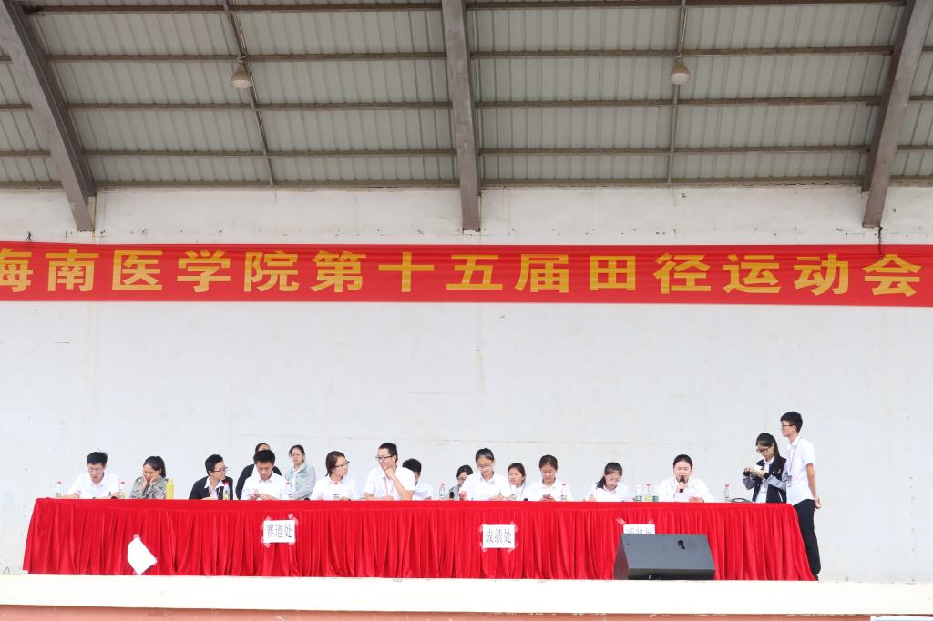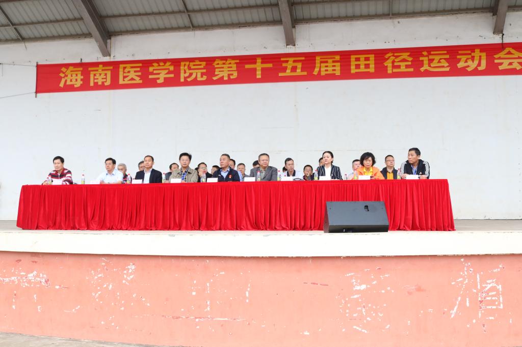 第十五届田径运动会于11月23日上午在我校运动场拉开帷幕。出席开幕式的领导和嘉宾有学校党委书记吕传柱,校长杨俊,党委副书记、纪委书记谢江波,党委委员、第一附属医院院长李丽,第二附属医院院长王毅,附属海南医院副院长单明华,海南省妇幼保健院副院长李玲,海南省安宁医院党委副书记陈文涛。本届运动会组织委员会全体委员,学校职能部门主要负责人以及各党总支书记、各学院院长也出席了本次开幕式。开幕式由张彩虹副校长主持。