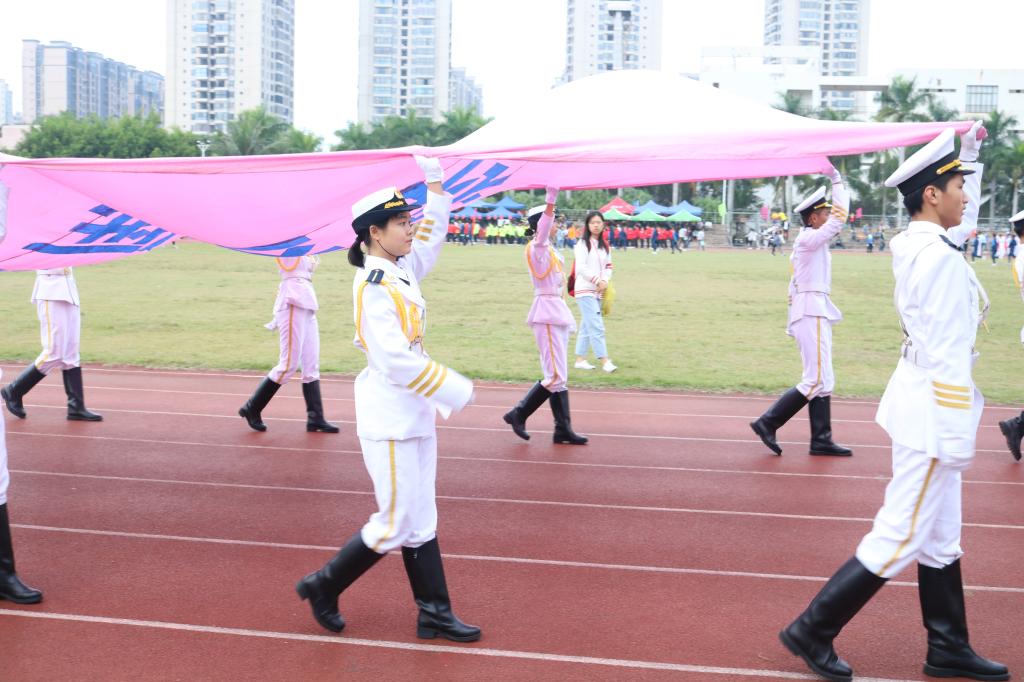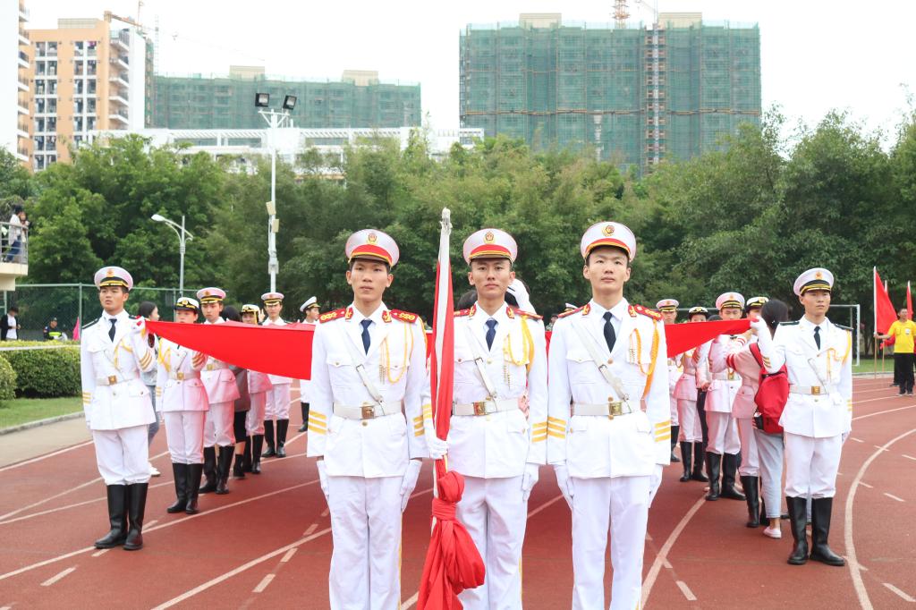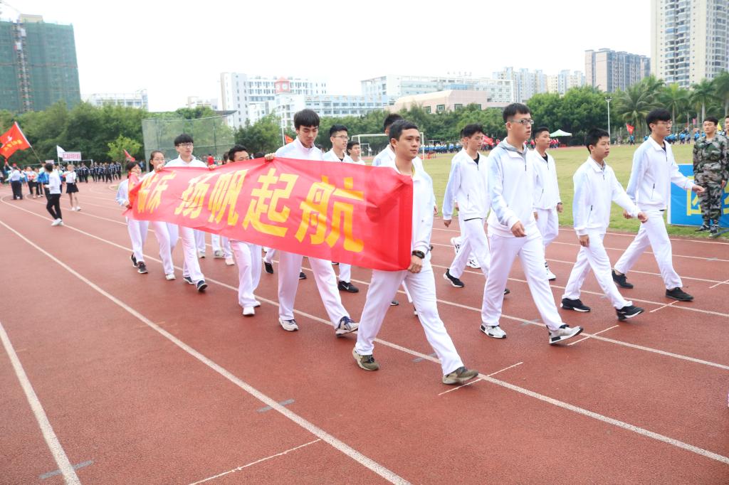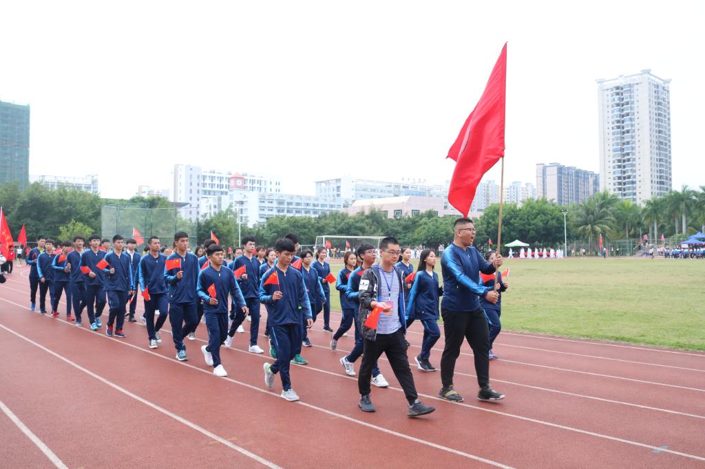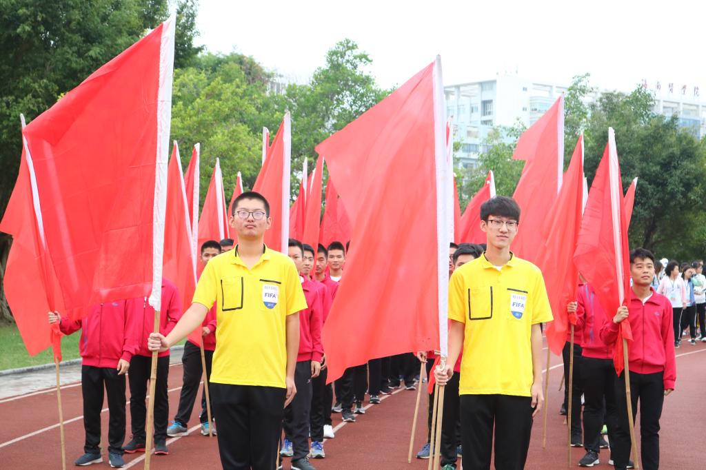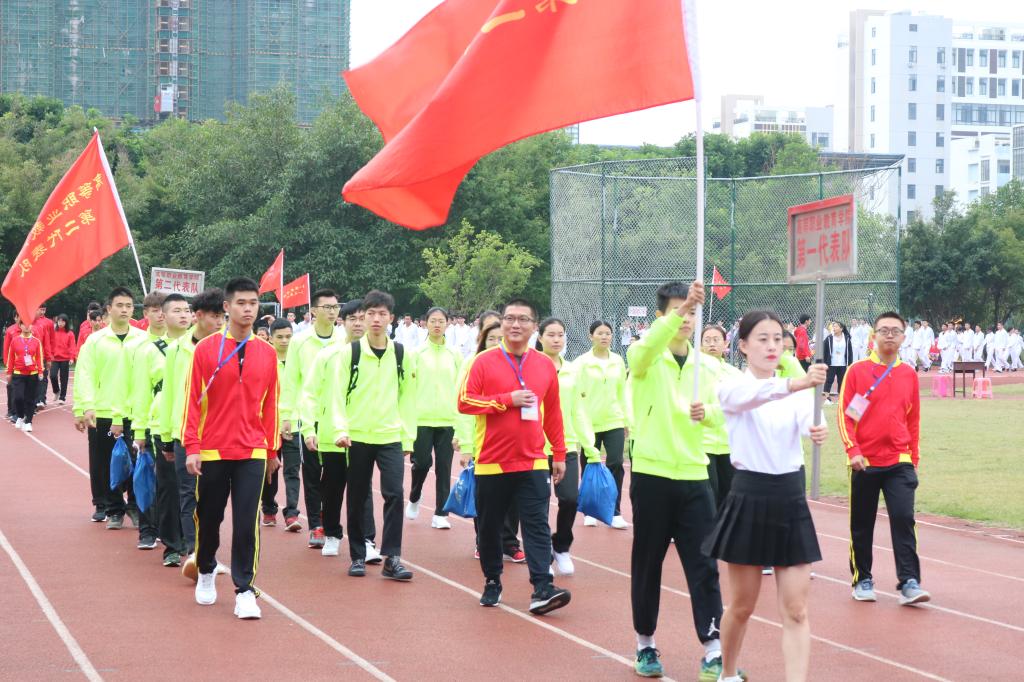 首先迈着矫健的步伐进入会场的是国旗护卫队,他们飒爽英姿,郑重而庄严地高擎旗帜,迈着坚定的步伐,向我们走来。紧接着是本次运动会严肃认真公平公正的裁判员队伍,接下来各学院与工会运动员代表依次入场(国际护理学院代表队、医学信息学院代表队、管理学院代表队、中医学院代表队、基础医学与生命科学学院代表队、口腔医学院代表队、药学院代表队、热带医学与检验医学院代表队、公共卫生学院代表、高等职业教育学院第一代表队、高等职业教育学院第二代表队、第一临床学院第一代表队、第一临床学院第二代表队、第二临床学院代表队、急诊创伤学院代表队、国际教育学院代表队、研究生院代表队、机关工会代表队、基础工会代表队、第一附属医院工会代表队、第二附属医学院工会代表队、附属海南医院代表队、附属肿瘤医院代表队、海南省安宁医院代表队、海南省妇幼保健院代表队)。他们以整齐划一的步伐向我们展现了运动员的朝气蓬勃,同时也向我们展示了运动员的自信与热情。