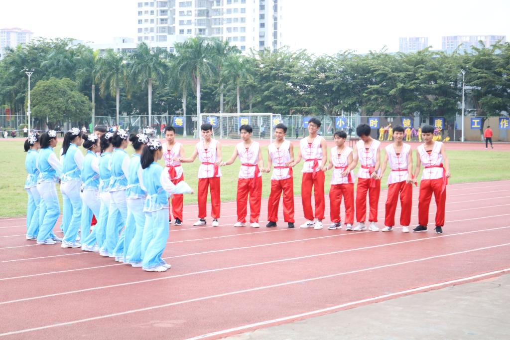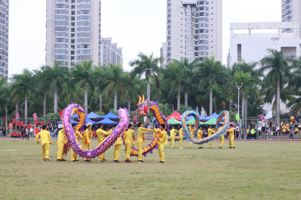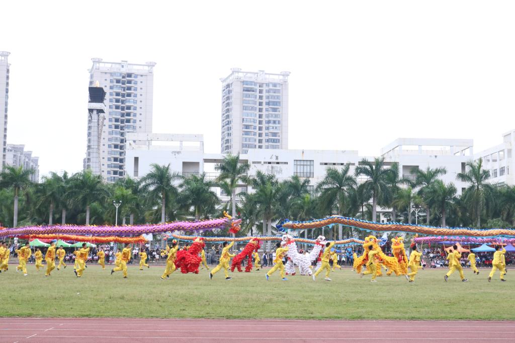 在轻快的音乐节奏中,一群热情洋溢的海医学子为我们带来拉拉操表演,青春气息扑面而来;紧接着带来表演的是极具地方特色的儋州调声;压轴出场的是海口经济学院拳星时代体育学院龙狮队带来的极具民族特色的龙狮表演《龙腾狮舞》。舞动,是他们心中的热情在释放;快乐,是他们心中的阳光在播撒。开幕式在龙狮表演中悄然落下帷幕,开幕式上的视觉盛宴也到此结束。