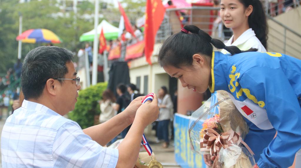 学校党委副书记、纪委书记谢江波为大会进行精彩致词。他代表学校党政领导和运动会组委会对取得优异成绩的代表队、运动员表示祝贺,向全体教练员、裁判员及全体工作人员表示衷心的感谢。本次运动会中出现了许多运动员勇于拼搏战斗的场景,运动员们所展现出顽强的意志及永不服输、团结向上的精神给全体师生留下深刻印象,值得我们发扬与学习。谢江波副书记表示,当今正值海南作为自由贸易区(港)建设的关键时期,在座的各位作为海南自由贸易区(港)建设的参与者、建设者,作为服务海南健康产业的中坚力量,我们应该以本届运动会为契机,在认真总结本次运动会成功经验的基础上,将我们所展现的“自强不息,团结向上,奋发有为”的海医精神;胜不骄,败不馁的挑战精神融入到建设海南自贸区(港)中去,融入到我校更名大学等中心工作中去,融入到提升海南医疗服务水平中去,以昂扬的斗志,崭新的姿态和饱满的激情谱写改革和发展的新篇章,为早日建成海南自由贸易区(港),为海南、