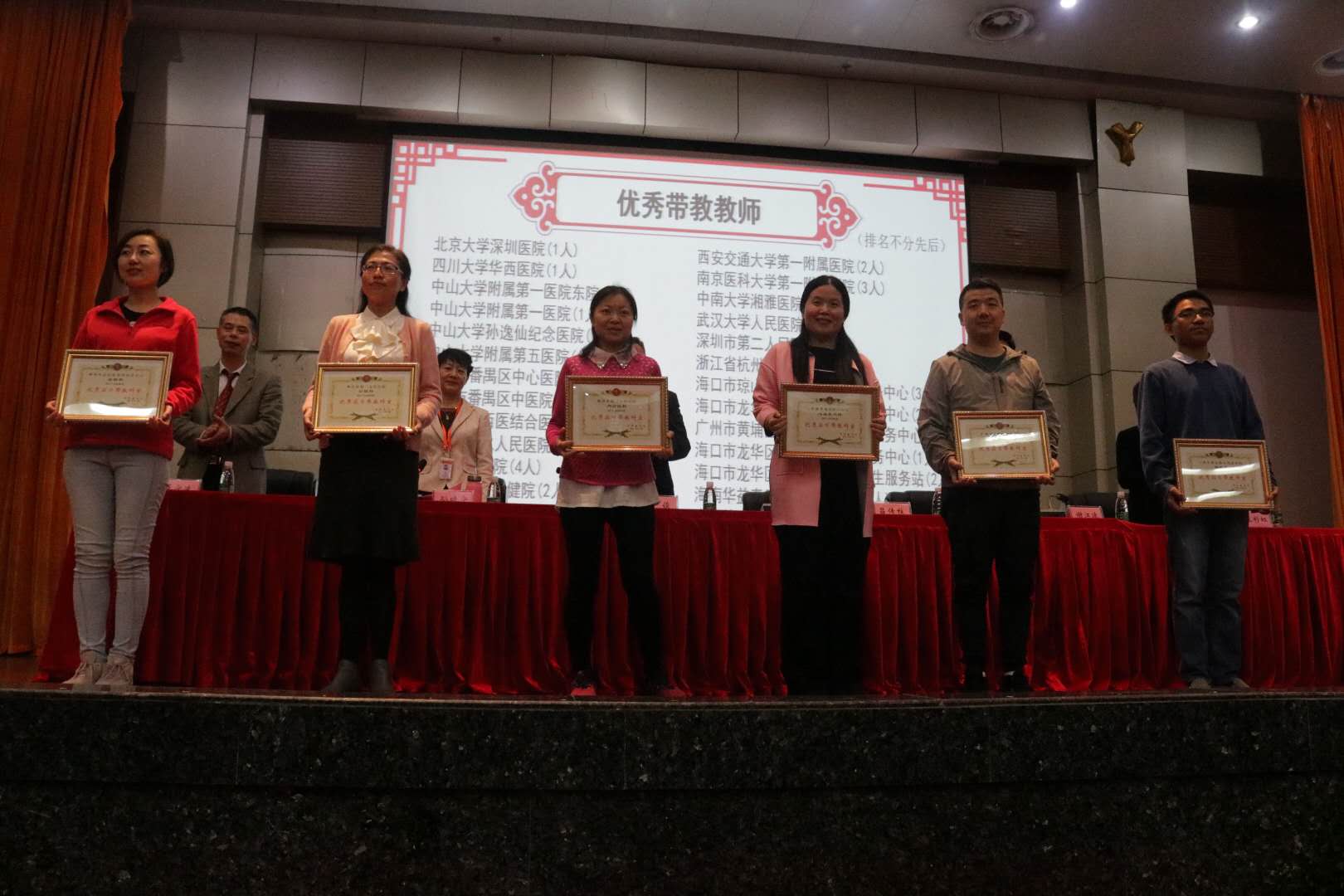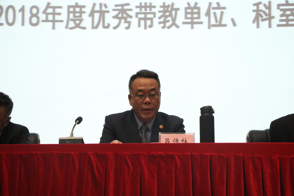 会上,表彰了2018年度优秀带教单位、优秀带教科室和优秀带教教师。由党委副书记谢江波宣读表彰决定,在主席台就座的领导为受表彰的先进集体和先进个人颁发奖牌和荣誉证书。