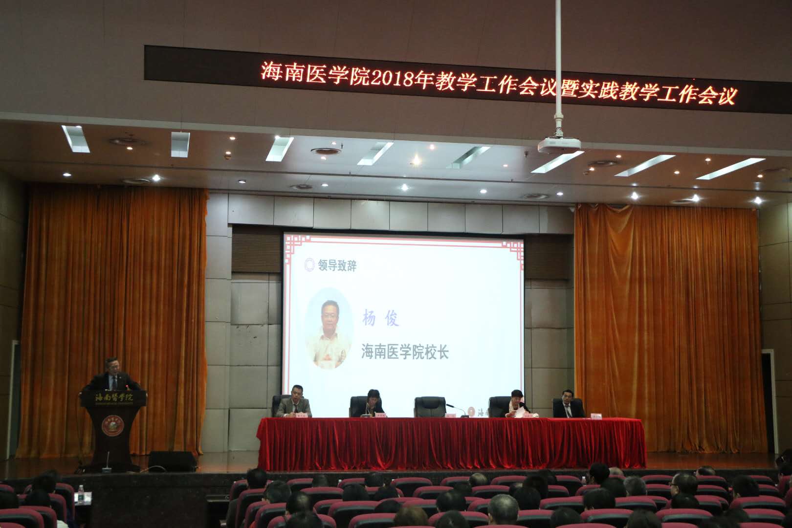 杨俊院长说,2018年是海医不凡的一年,在这转型升级关键时期,全校认真学习贯彻全国教育大会精神,抢抓机遇,较好地完成了相关工作任务,取得了累累硕果:学校获批博士授权单位(整改后一年内验收),临床医学为博士授予点,近期正在申请博士授权单位验收;全省医疗实力最强、医疗设备最齐全、医疗技术水平最高、规模最大、历史最为悠久的海南省人民医院划为我校直属附属医院;举全校之力,汇聚了四方高层次人才;热带医学特色发展步伐加快;学校办学条件明显改善……,杨院长如数家珍,娓娓道来。