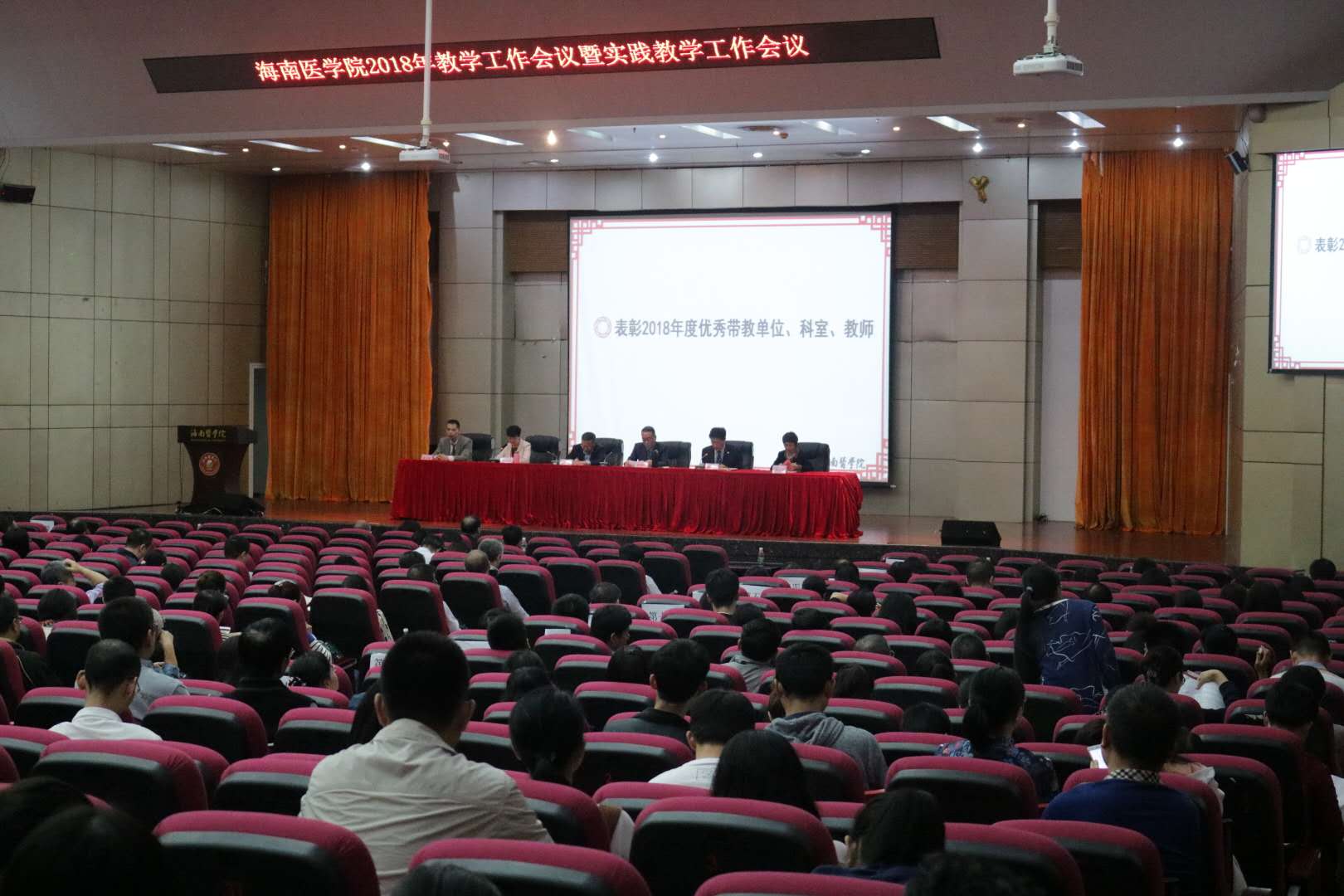 2019年1月12日,我校在图书馆国际报告厅召开2018年教学工作会议暨实践教学工作会议。吕传柱、杨俊、谢江波、孙晓宁、张彩虹等学校领导及学院院长助理龚宁波出席会议。学校党政群团管理机构正副职,各直属附属医院院长或分管教学副院长,教学管理人员、教研室(或科室)主任或副主任、2018年受表彰的优秀带教科室和优秀带教教师代表;学校二级教学单位党委(党总支)书记和副书记,管理毕业实习班级辅导员;学校教学、教辅、科研机构正副职,各专业负责人、教研室正副主任,各类教学秘书,课程负责人、教师代表约700人参加会议。会议由黄元华副院长主持。