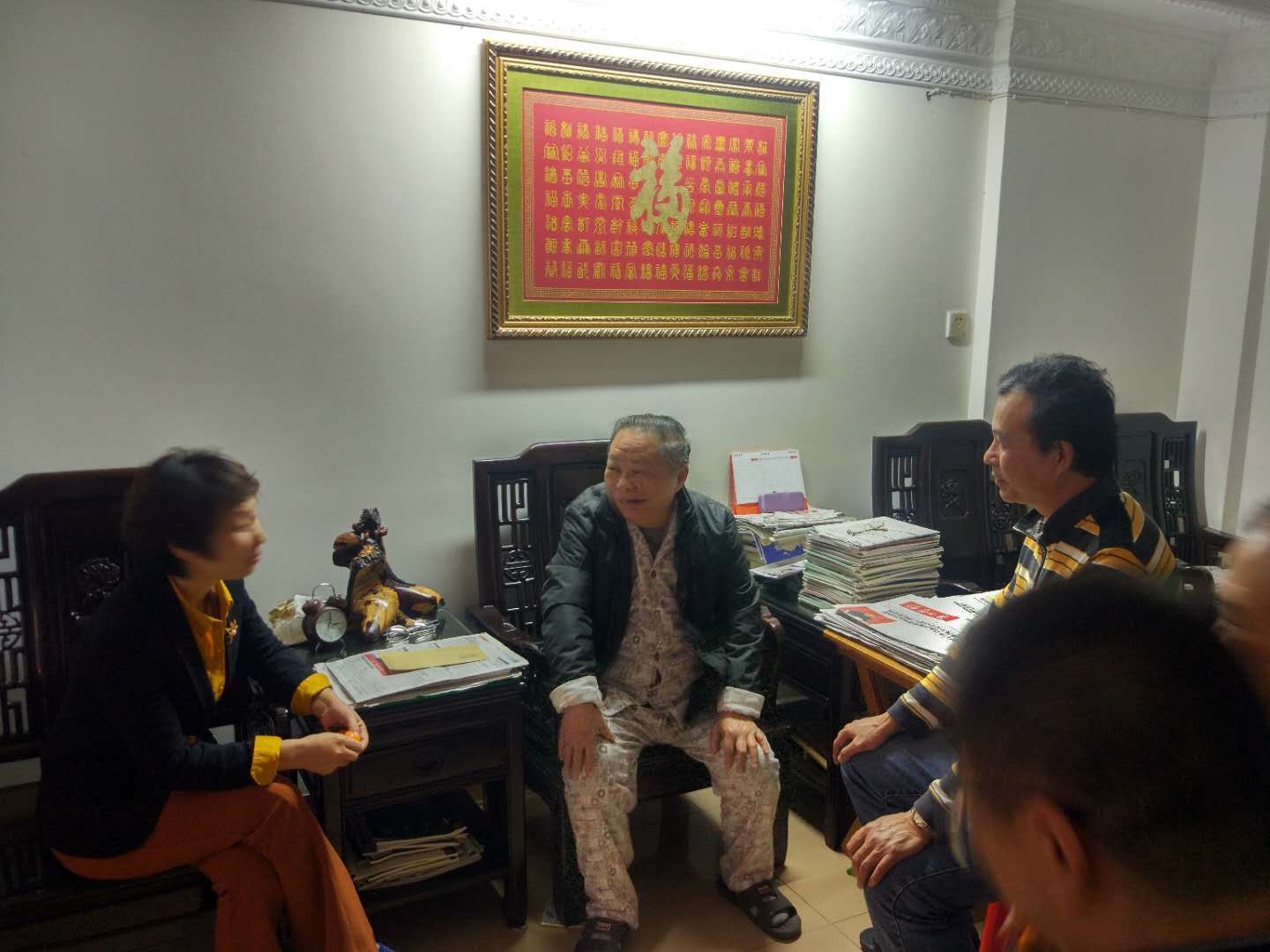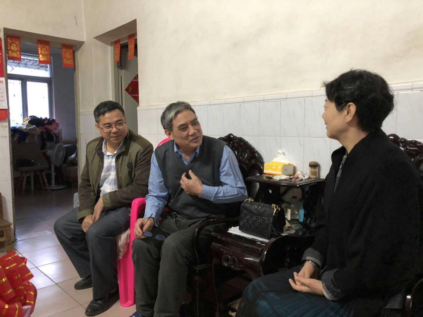 一路走访,一路问候,一路祝福。每到一家,各级领导与走访慰问对象亲切交谈,仔细询问他们的生活和身体状况,提醒他们注意防寒保暖,并祝大家身体健康、阖家幸福。同时,叮嘱有关方面继续真心真情做好相关工作,帮助他们解决后顾之忧。在老干部家,领导与他们拉家常谈发展,叮嘱老干部们要保重身体,向老同志通报学校一年来主要工作,听取他们对工作的意见或建议,衷心感谢他们为海医各项事业发展作出的贡献,希望他们继续发挥余热,一如既往地为学校的发展作出力所能及的贡献。在教职工家,领导与他们促膝交谈,关切询问他们的身体、生活情况,勉励他们面对困境时,要树立信心、迎头赶上,在政府、学校和社会的帮助下,积极参与到学校发展工作中来,共同创造更加美好的生活。在贫困户家中,各级党组织为对口帮扶的贫困户送去一些日常生活用品、衣服棉被和慰问金,在寒冷的冬天,从生活的细微之处,为贫困户送去了温暖。