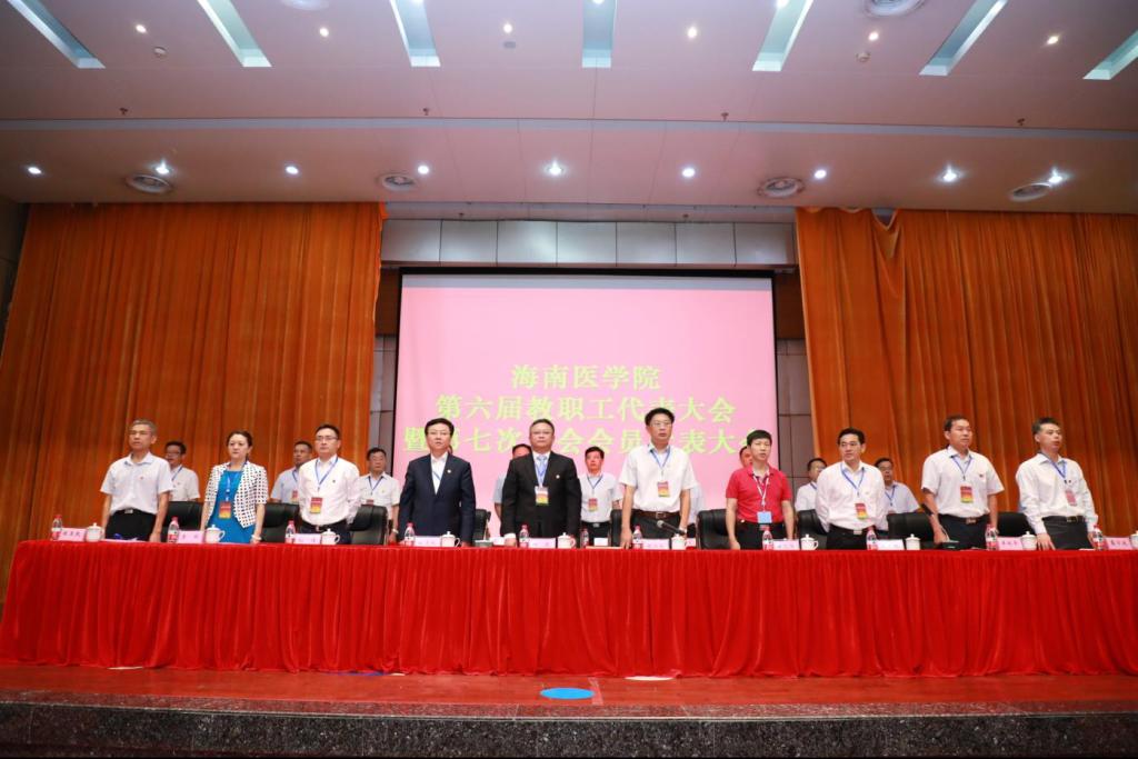 党委副书记、校长杨俊;党委副书记、附属海南医院党委书记赵建农;副校长黄元华;党委委员、副校长向伟;党委委员牟忠林;党委委员、第一附属医院院长李丽;第二附属医院院长王毅等大会主席团成员出席并在主席台就座。大会由党委副书记、纪委书记谢江波主持。