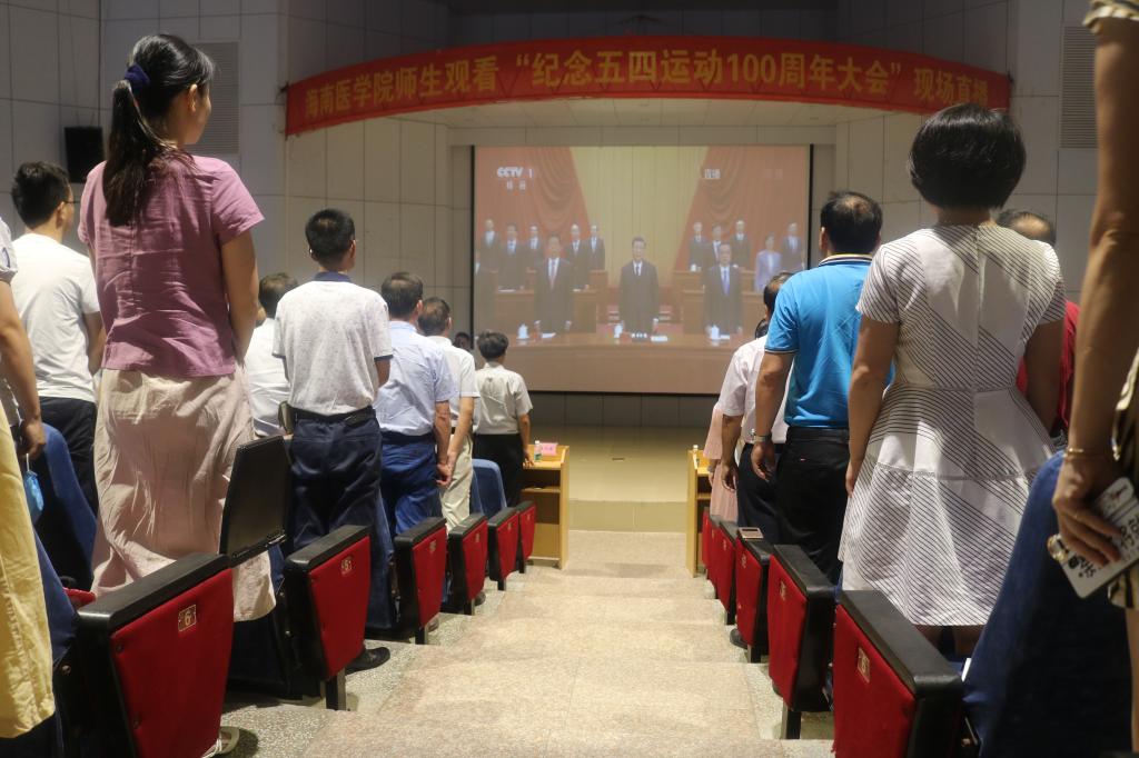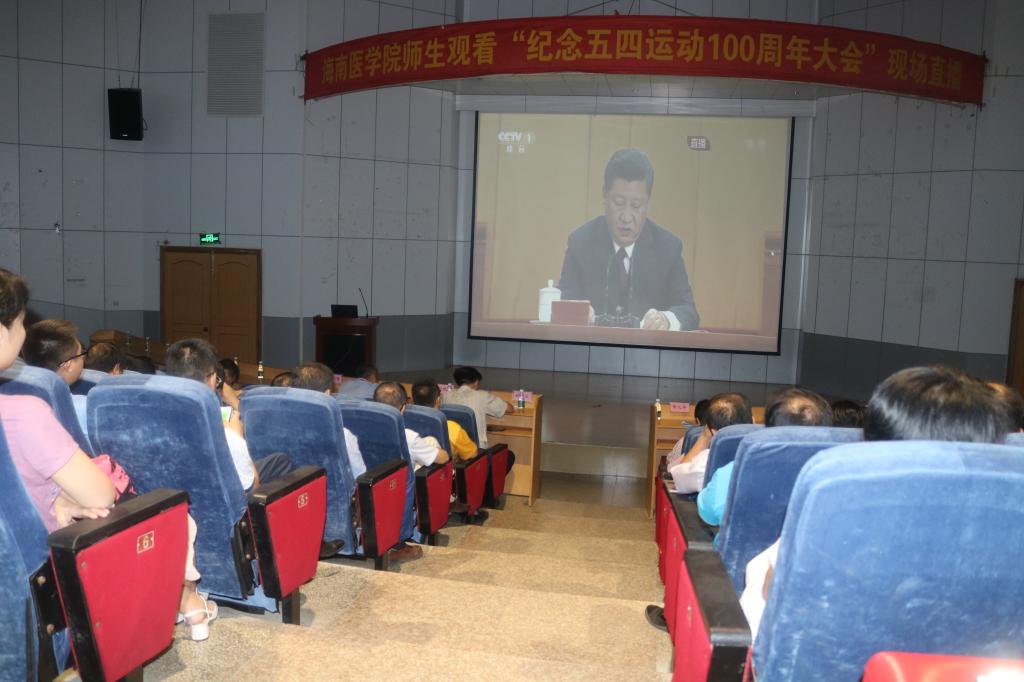4月30日上午,我校在多功能报告厅举行观看“纪念五四运动100周年大会”现场直播活动,观看聆听、深入学习并领会习近平总书记纪念五四运动100周年的重要讲话精神,出席会议的有校长杨俊、副校长黄元华、副校长孙晓宁、副校长向伟,会议由学校党委副书记、纪委书记谢江波主持,校务会全体人员、全体辅导员及学生代表400余人参加此次观看直播活动。