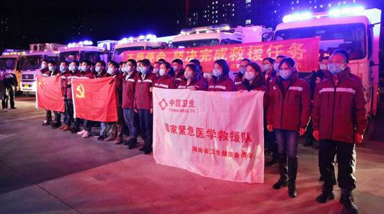 2月3日下午,7点,由58名队员、11台车辆组成的国家紧急医学救援队在
