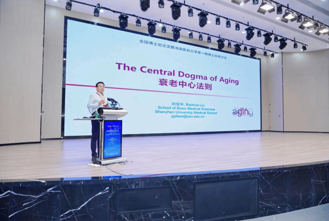 国家杰出青年科学基金获得者、深圳大学基础医学院院长刘宝华教授以“衰老中心法则”为题,围绕衰老的分子机理与干预策略展开了系统论述,其研究深入揭示了一系列核心过程,包括从DNA、RNA到蛋白质的稳态维持、关键表观修饰酶的作用,以及核膜蛋白调控DNA修复通路、内皮细胞衰老驱动整体衰老等,为理解衰老的本质提供了新颖而深刻的视角。