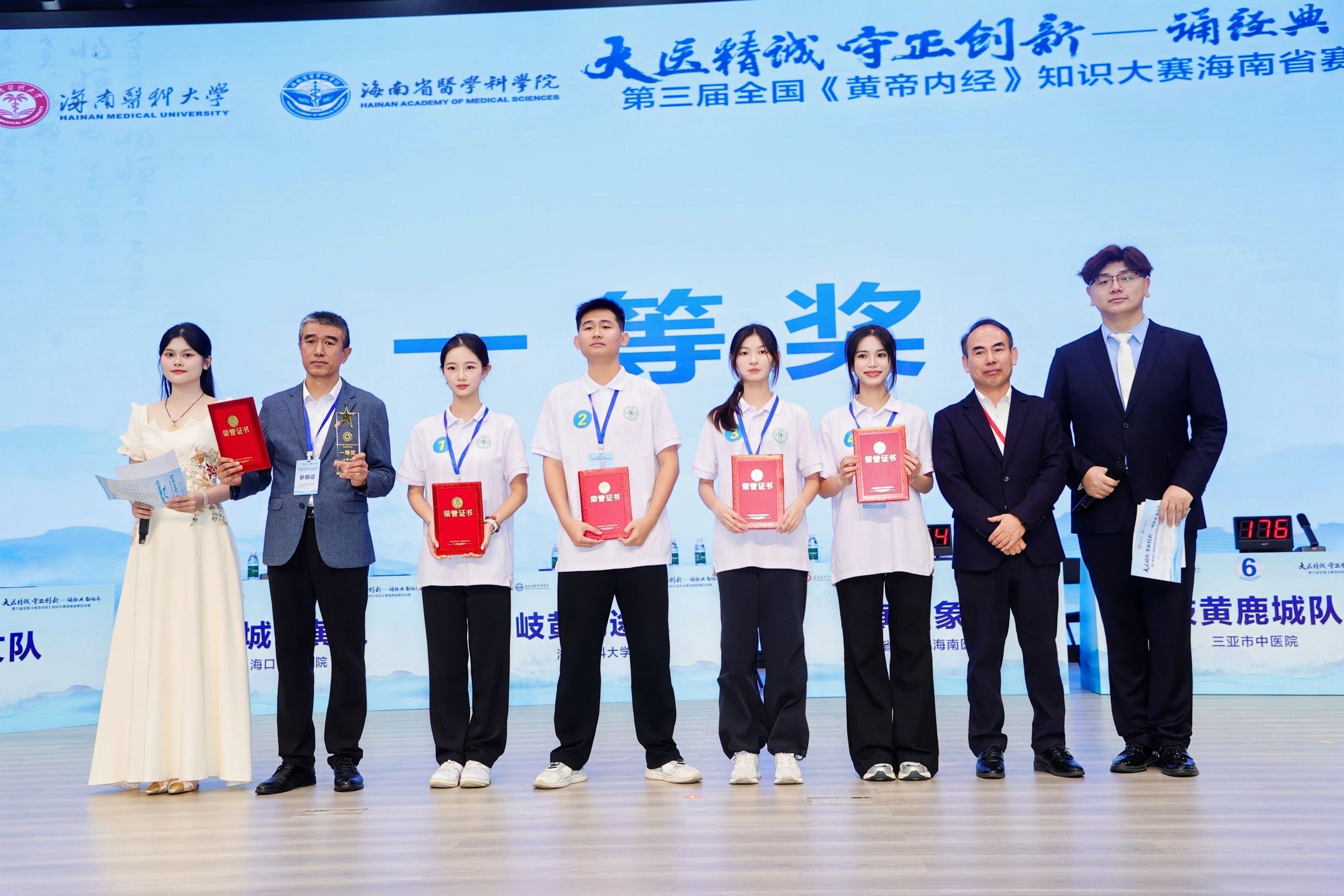 最终,我校中医学院“岐黄鸿途队”荣获一等奖;三亚市中医院“岐黄鹿城队”获二等奖;海口市中医医院“椰城岐黄队”、广东省中医院海南医院“岐黄四象队”荣获三等奖;琼海市中医院“医典冲锋队”、文昌市中医院“文昌杏林队”、万宁市中医院“东山弘文队”、五指山市中医院“五指探玄队”荣获优秀奖。比赛还设置了颁奖环节,领导嘉宾为获奖团队逐一颁发奖杯与证书。