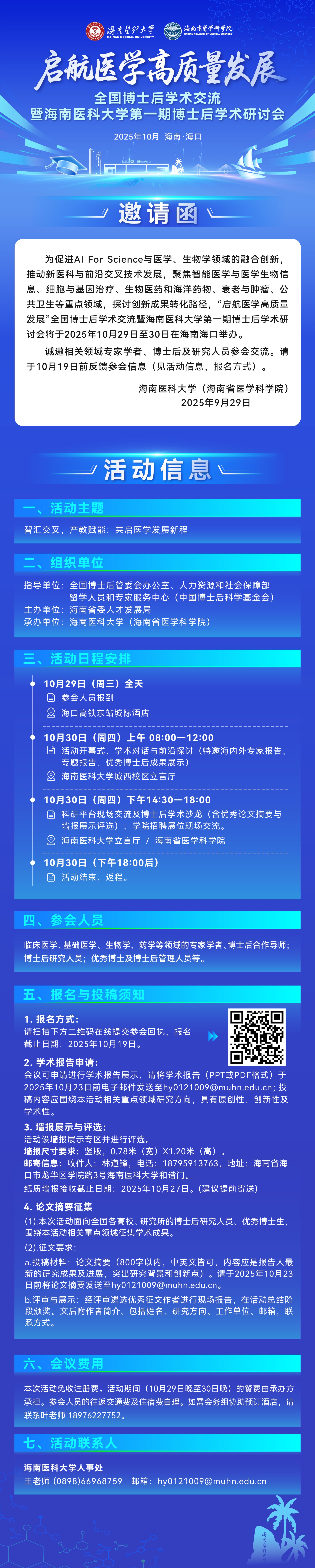 “启航医学高质量发展”全国博士后学术交流暨海南医科大学第一期博士后学术研讨会