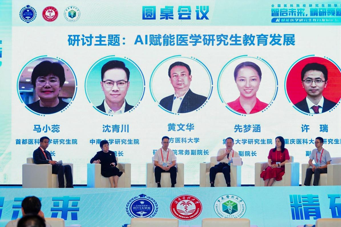 论坛期间,与会嘉宾为优秀论文获奖者颁发荣誉证书。教育部原副总督学刘锦等专家作主旨报告。在圆桌会议环节,专家们围绕“用好AI赋能医学研究生教育发展”“研究生教育管理者在AI转型浪潮中引领研究生教育模式转变的探索”“研究生教育的数字化实践经验分享”等议题进行深入交流研讨。