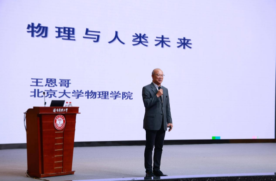 讲座中,王恩哥院士以《物理与人类未来》为主题,从物理学起源展开论述:首先梳理经典物理学阶段伽利略、牛顿的核心贡献,进而阐述近代物理学中量子力学、相对论的建立历程,同时介绍X射线、电子等关键发现及凝聚态物理全量子效应的前沿探索方向;此外,还系统分析了半导体、晶体管、集成电路的技术发展脉络,以及硅谷崛起背景下全球芯片产业的竞争格局。院士强调,物理学通过技术变革持续深刻影响人类生产生活,并重申对物理世界探索的学术价值与科学思维方式的重要性。