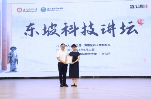 2025年9月11日,我校第34期“东坡科技讲坛”在立言厅如期举行。本次讲坛以航天分子医学研究为核心,特别邀请中国航天员科研训练中心研究员李英贤担任主讲嘉宾,副校长邹卫国主持活动。