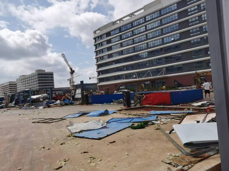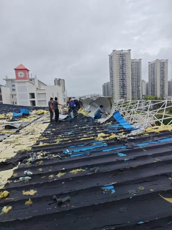 台风摩羯给校园建筑和新校区建设带来严重的破坏。
