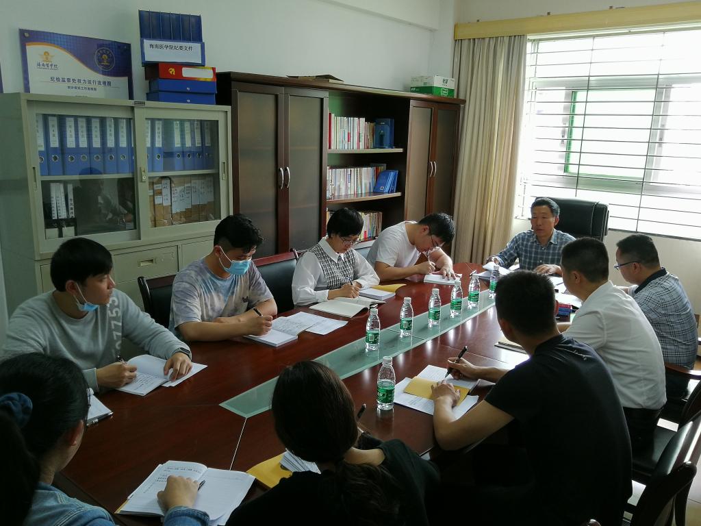 纪检监察部门召开部门工作会议,组织全体人员开展集中理论学习,会议由学校纪委书记省监委驻
