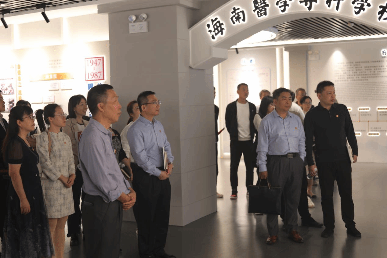 在校史馆讲解员的精彩介绍下,全体同志认真聆听、驻足观看、深刻领会,通过一幅幅历史图片、一件件老旧珍贵的物件、一个个感人的故事,深入了解76年来 不平凡的发展历程与辉煌建设成就。海医历代先贤们饱含爱国爱岛爱校情怀,始终坚守“为党育人、为国育才”的初心使命,历经曲折、艰苦创业,赓续学脉、铸魂育人,为海南医疗教育事业发展做出了不可磨灭的贡献,值得后人永远铭记。76年筚路蓝缕、风雨兼程,海医的发展史就是一部奋斗史,体现了一代代海医人“自强不息、团结向上、奋发有为”的精神力量。