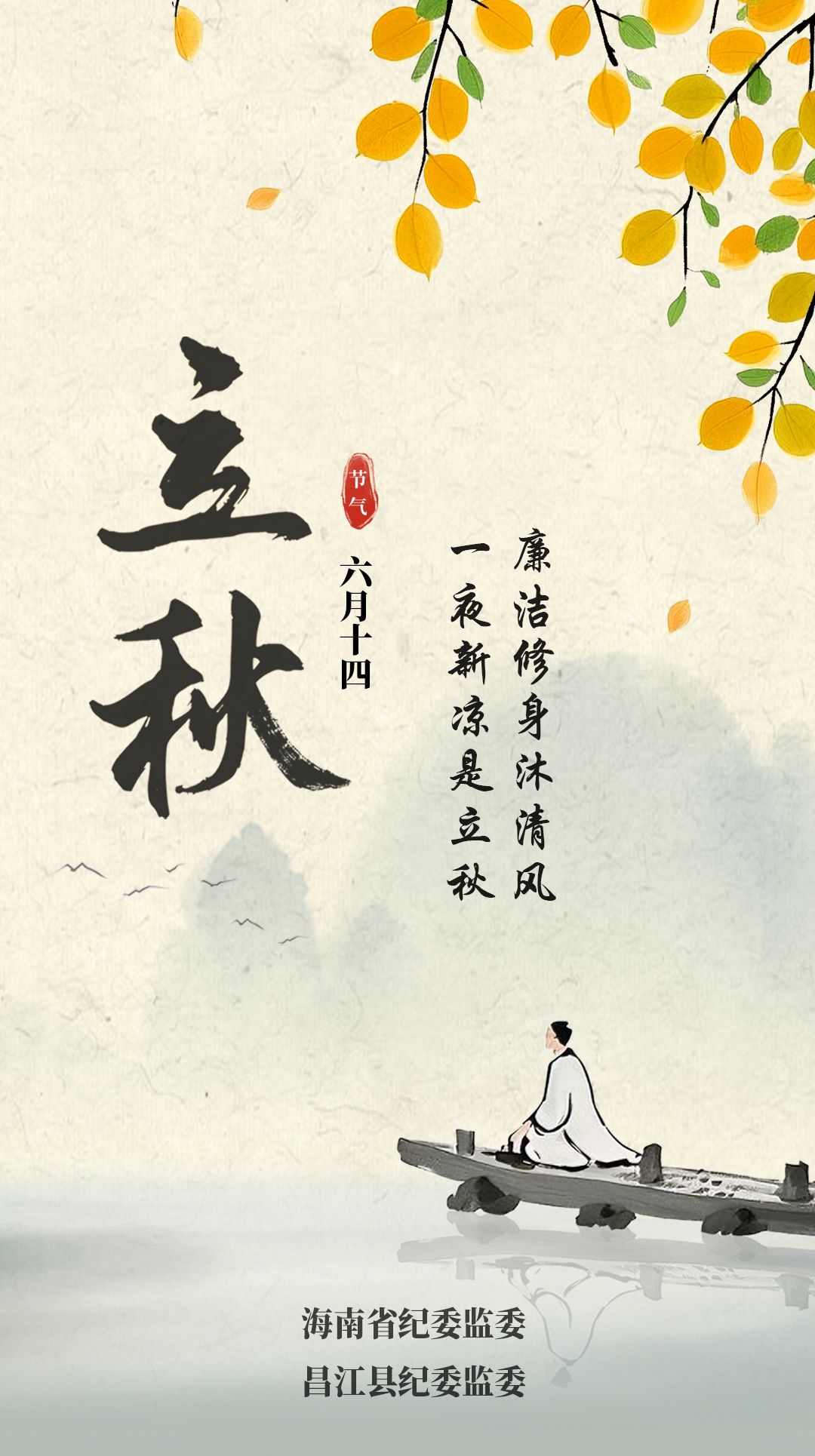 廉洁修身沐清风,一夜新凉是立秋。立秋已至,广大党员干部当借此时序转换,褪去夏日的浮躁、涵养秋高的清气,守住慎独慎微的行为底线,常怀自省自警的道德修为,充盈实干担当的为民情怀,让廉洁自律的风气如秋风送爽,贯穿履职始终,在岁月沉淀中收获民心所向的“丰年”。