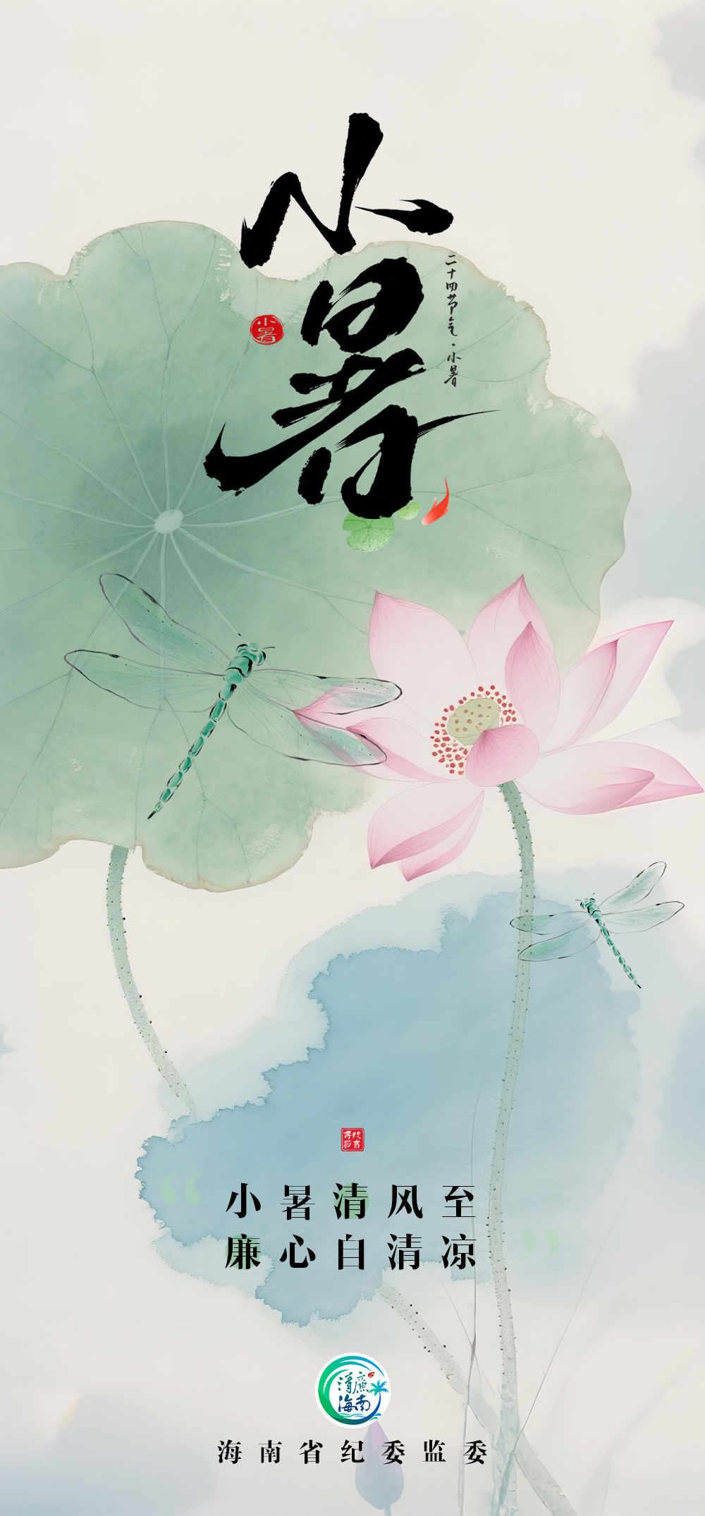 小暑时节,热浪翻涌,万物在骄阳下蓬勃生长,党员干部应坚持静以修身、俭以养德,摒弃急功近利、心浮气躁,在暑气蒸腾中锤炼意志,于细微之处筑牢防线,以清风正气驱散高温酷暑,以清正廉洁涵养为民初心,始终做到心有所畏、言有所戒、行有所止,永葆共产党人清正廉洁的政治本色。(海南省纪委监委、定安县纪委监委)