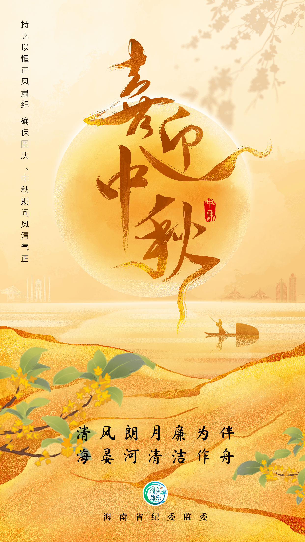 清风朗月廉为伴,海晏河清洁作舟。清廉是海南自由贸易港建设题中应有之义,值此国庆、中秋“双节”,全省党员、干部应自觉筑牢理想信念“压舱石”,注重培育良好家风,坚决贯彻落实中央八项规定精神,不越“底线”、不踩“红线”,守住“小事小节”,以清廉养浩然正气,以优良作风护海南自贸港建设蹄疾步稳、行稳致远。