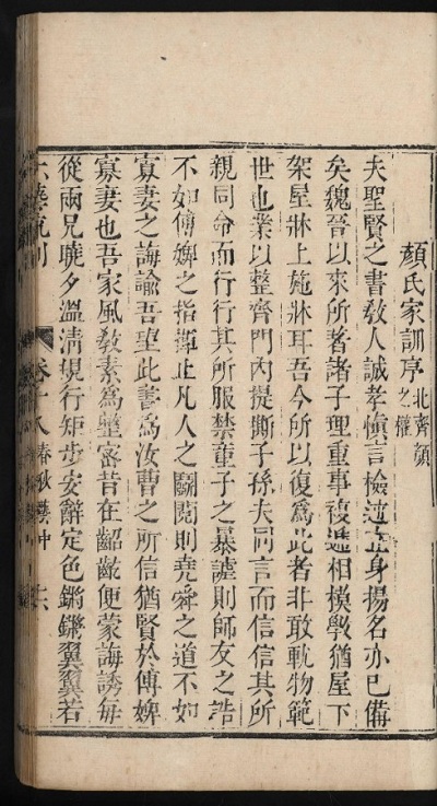 《颜氏家训序》,收录于明代学者黄佐编写的《六艺流别》,该版本藏广东省立中山图书馆。图片来源:中华古籍智慧化服务平台