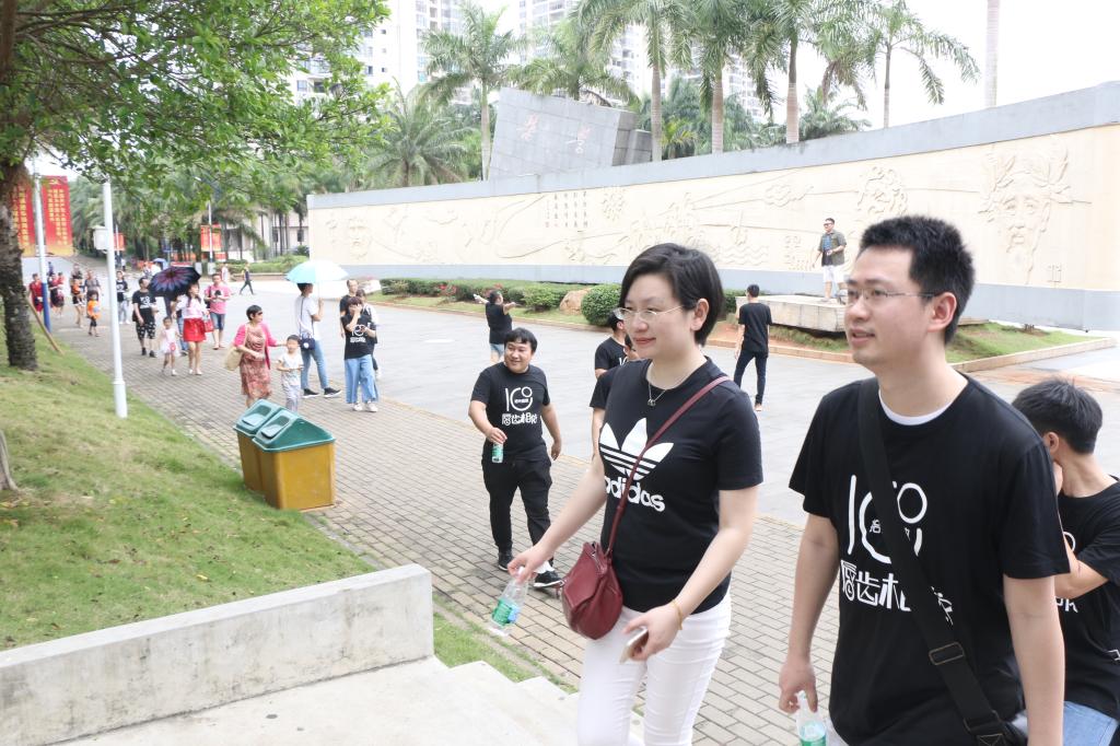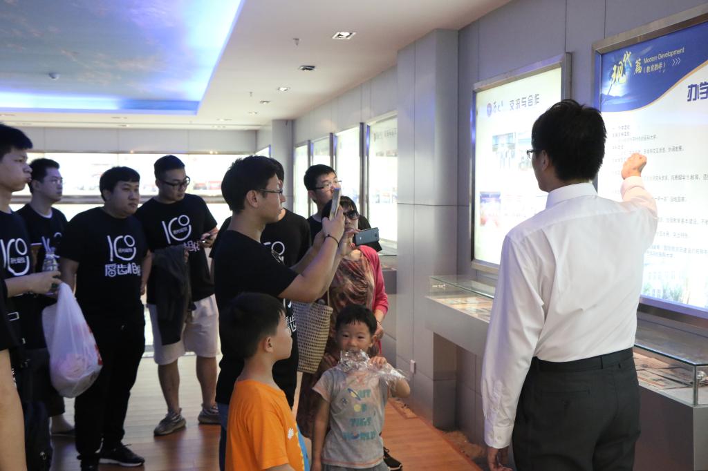 回访校友们穿上印有“时光绽放,唇齿相依”字样的衣服,在王鹏老师的带领下参观了校史馆、图书馆、宋子文体育馆等等,校友们分别在校史馆门口及图书馆前集体合影留念。一路上校友们一边深切地感受着母校在这些年来的巨大变化,一边畅谈同窗五年的美好时光,校道上、青鸟湖畔、凤凰广场不时传来校友们爽朗的欢声笑语。