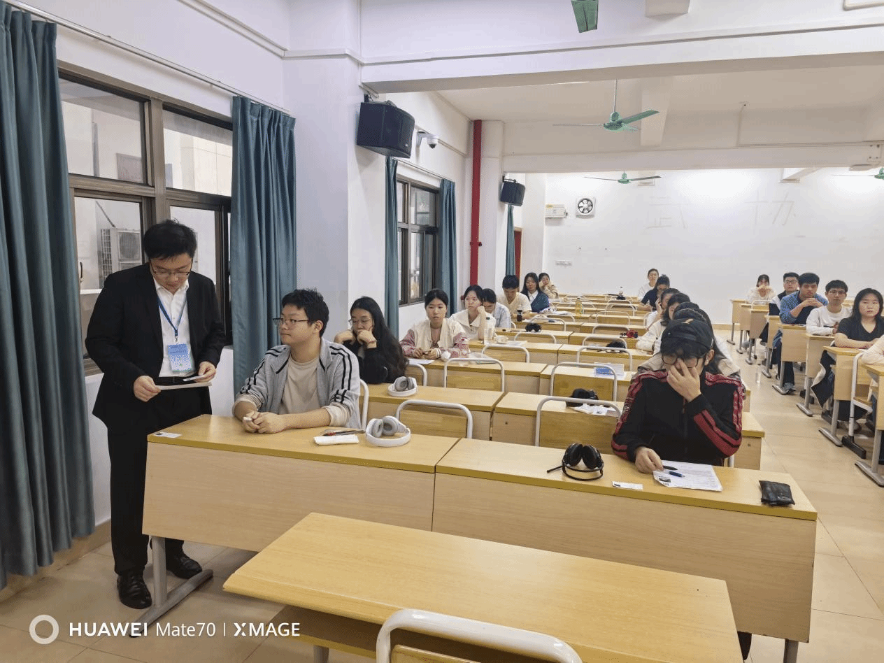 为维护考试公平公正,学校多措并举严守安全底线。考前广泛开展诚信教育宣传,强化考风考纪意识;严格落实考场封闭管理与设备调试,保障听力系统与监控设备稳定运行;严格执行试卷保密规定,落实值班巡查制度;组织全体监考人员进行系统培训,明确监考人员职责,强调考试纪律和操作规范,签订责任承诺书。考试期间,严格执行考生身份核验、安检入场流程,杜绝违规物品带入考场;巡考人员全程巡查,及时处理突发情况,维护考场秩序。