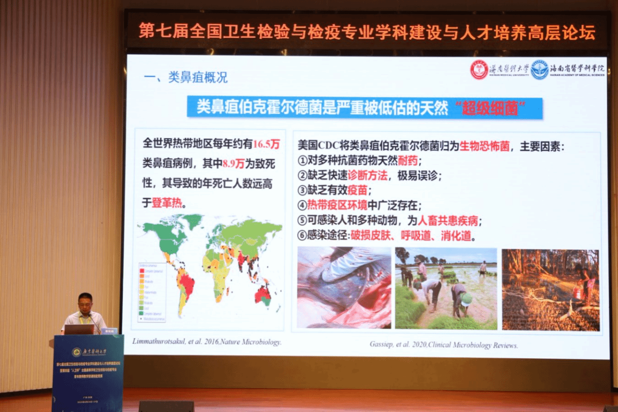 我院夏乾峰教授应邀出席本次高层论坛,并在大会上作了题为《类鼻疽伯克霍尔德菌新型快速检测技术的建立和应用》的专题报告。报告中,夏乾峰教授深入分析了当前我国卫生检验与检疫在热带传染性病原体领域的重要作用,他结合海南本地特色,重点分享了类鼻疽伯克霍尔德菌的快速检测技术的开发和实际应用。报告内容翔实、见解独到,获得了与会专家学者的高度评价和热烈反响,为全国同类专业的建设发展提供了宝贵的经验启示。