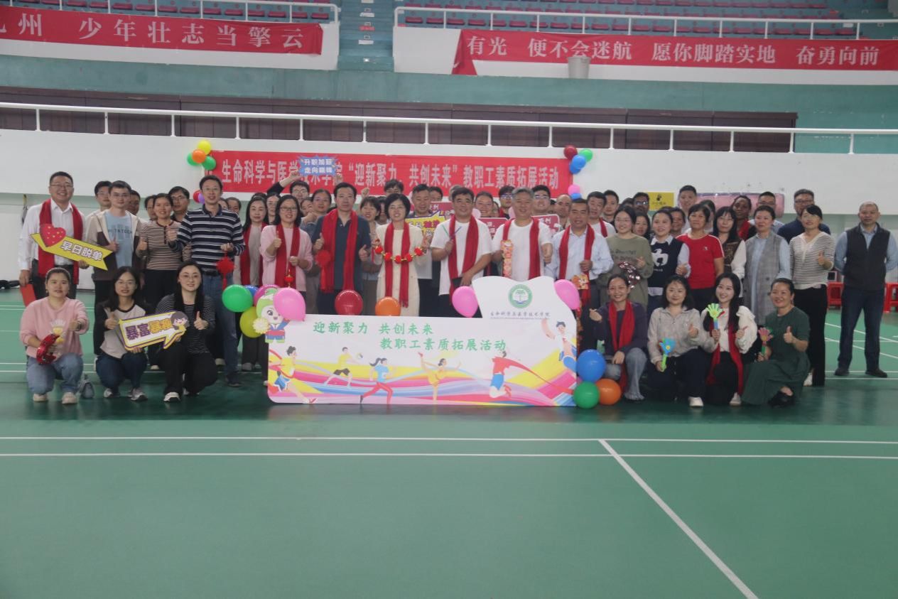 为增强学院教职工的凝聚力与向心力,激发团队协作精神,以更饱满的热情迎接2026年的挑战,海南医科大学生命科学与医学技术学院在学校工会的支持下,于2025年12月19日下午在我校子文体育馆成功举办了主题为“迎新聚力,共创未来”的教职工素质拓展活动。学校工会专职副主席郭向、学院领导与全体教职工共同参与了此次活动,在欢声笑语与默契协作中,圆满完成了既定活动流程。