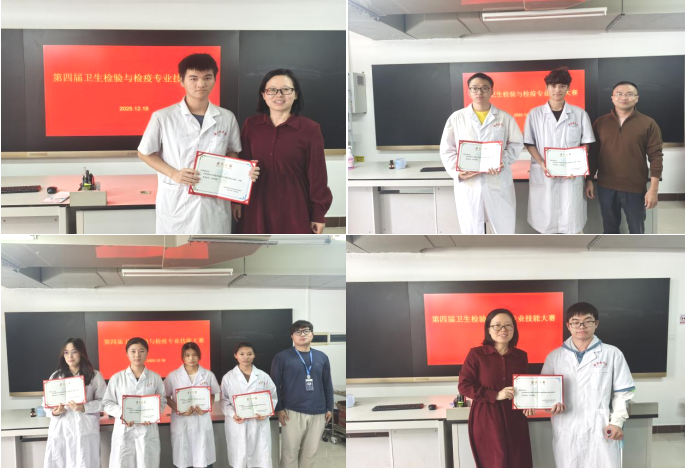 经过激烈角逐,最终评选出一等奖1组、二等奖2组、三等奖4组及优秀奖1组。颁奖仪式上,专业负责人于春伟教授对本次比赛进行总结,充分肯定了参赛选手的专业素养和技能水平,同时强调卫生检验与检疫工作是守护公共卫生安全的重要防线,希望同学们以此次比赛为契机,进一步夯实专业基础、提升实操能力,未来更好地服务于公共卫生事业发展。