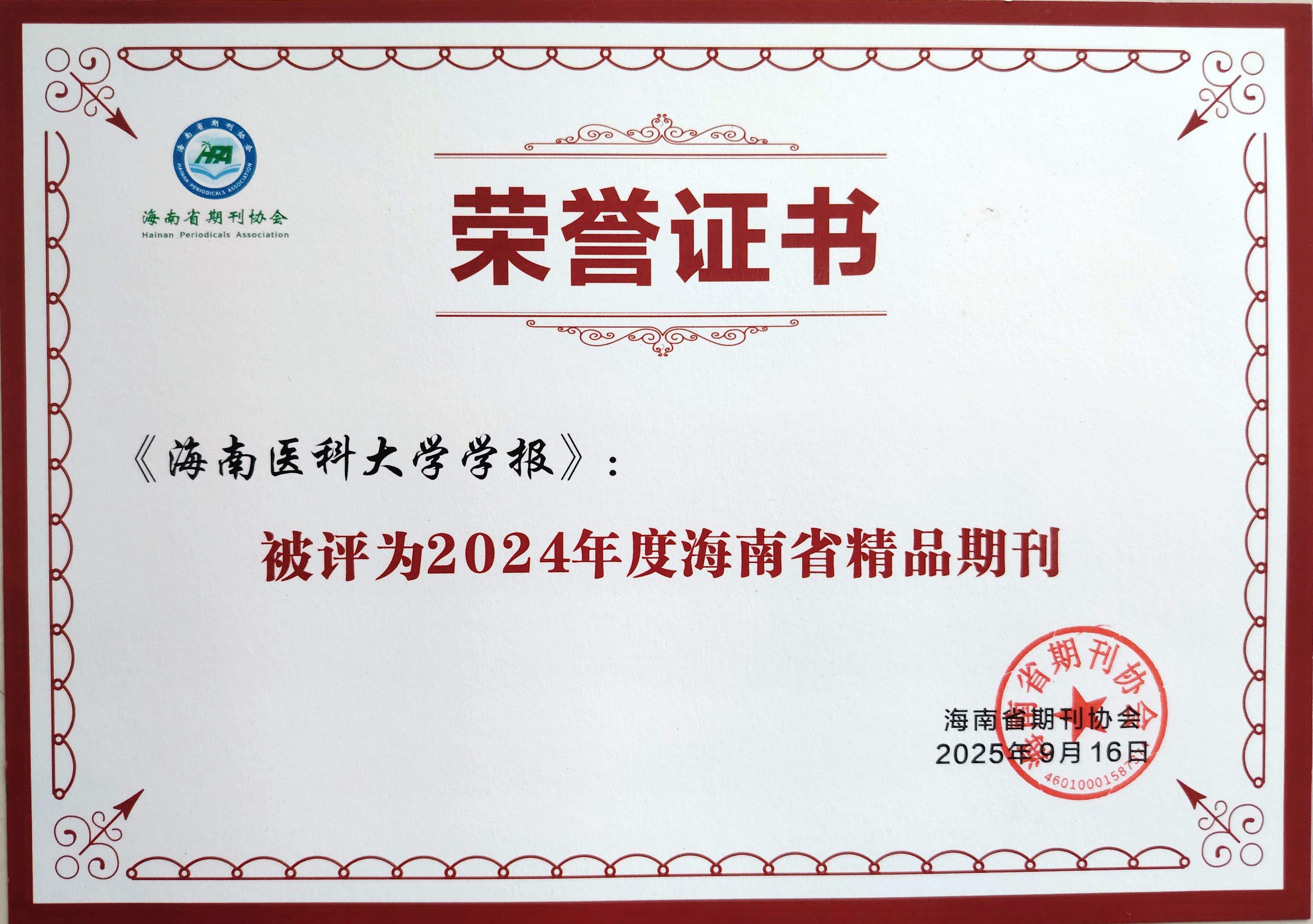 近日,海南省期刊协会2024年度期刊评优活动结果正式公布,《海南医科大学学报》荣获“精品期刊”称号。
