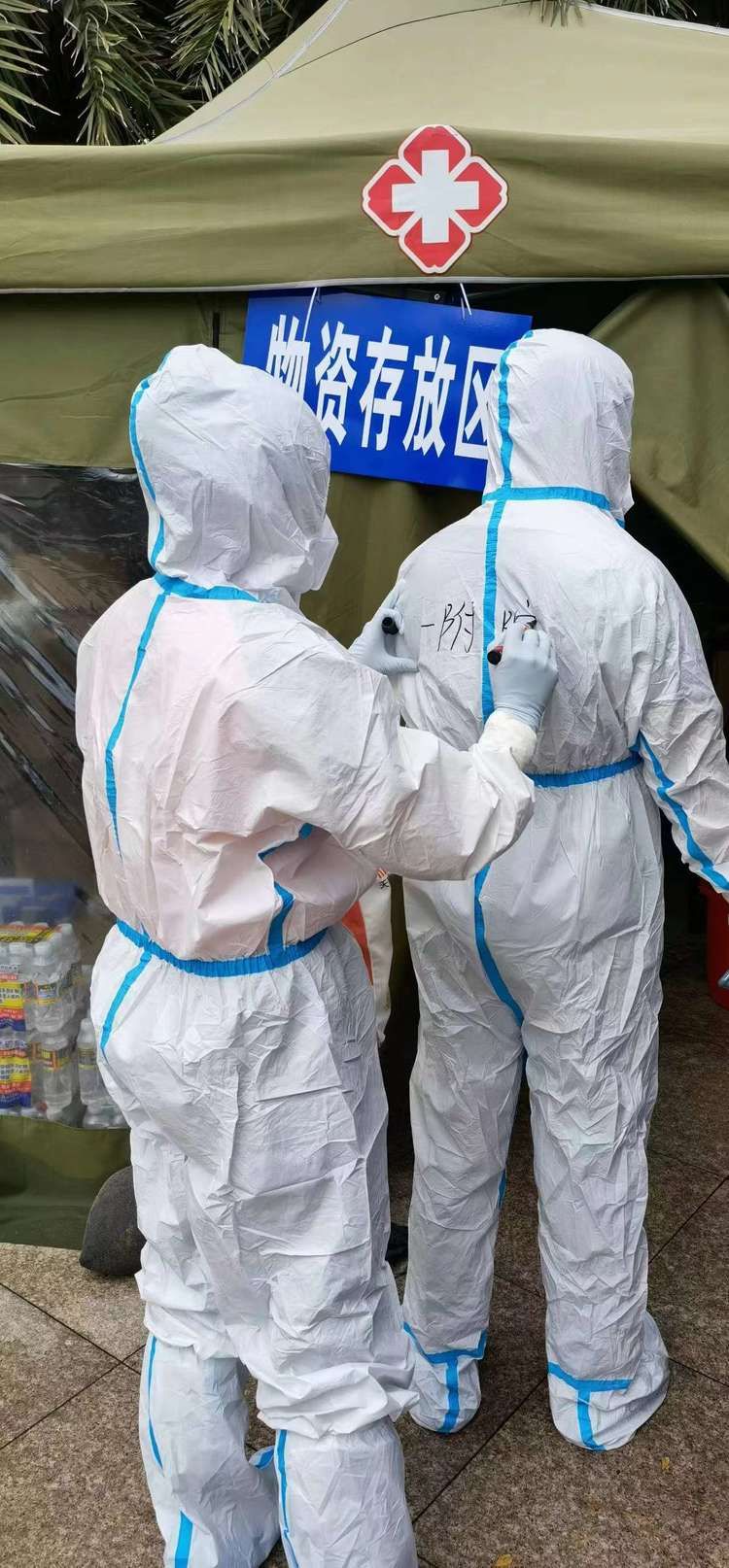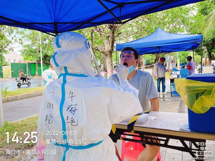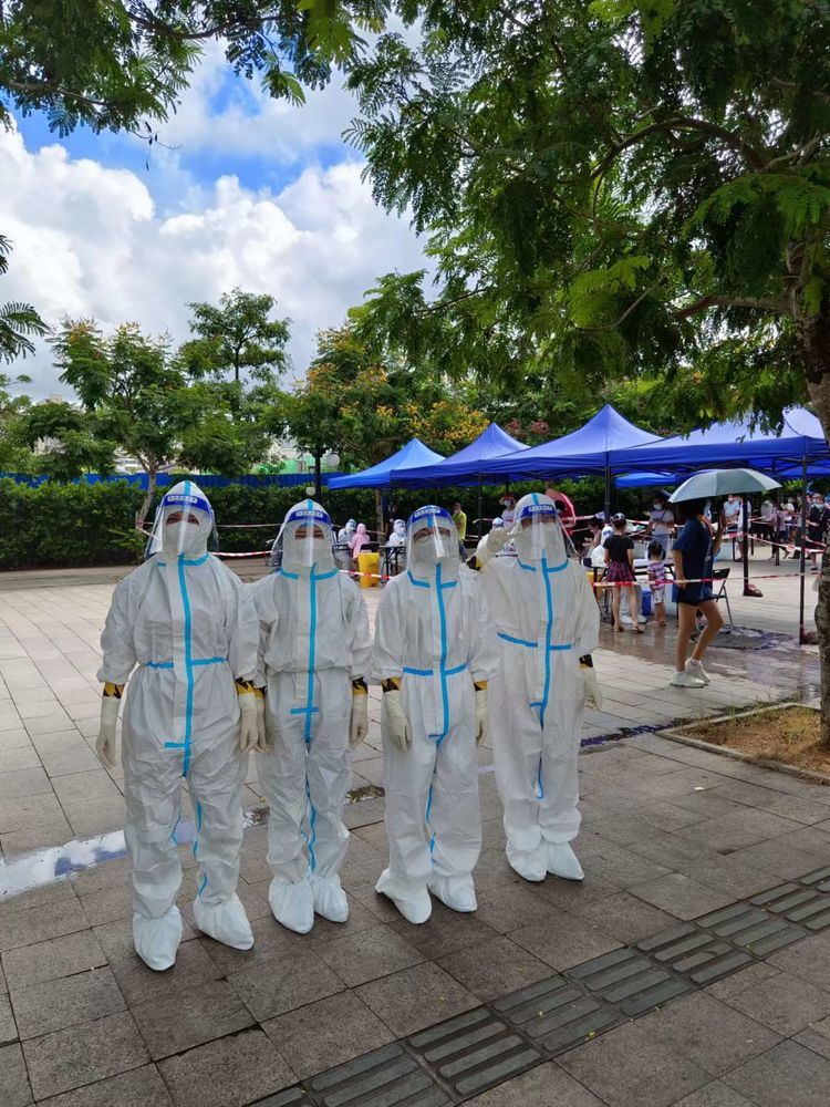 在核酸检测点位现场,支部党员们立足各自岗位、联动配合龙华区海垦街道防疫工作人员,承担着30余个点位核酸采样任务,有序开展着城乡全域核酸检测工作。为尽快完成社区核酸筛查,党员们穿上完全密闭的防护服采样长达数小时。尽管雾气已布满了防护面屏,双手早已在手套中浸满了汗水,他们仍不辞辛苦、坚守岗位,选择牺牲假期、离别亲人,顶着高温和暴雨天气连续多日加班加点,日夜坚守在社区疫情防控第一线,为遏制疫情扩散蔓延作出了重要的贡献。