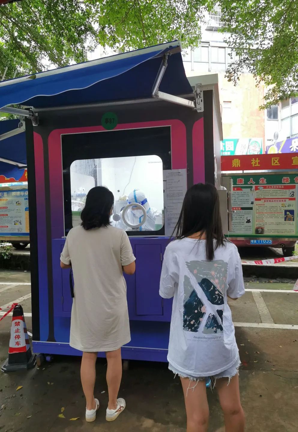 儿科学院的研究生团队第一时间就联系到学院,寻找报名当志愿者的途径,8月9日当晚,由儿科学院党委袁勇书记联系校团委负责人宋融书记,宋书记联系到海口市团市委,最后对接到秀英区团委,秀英区团委负责人对我们的志愿者表示热烈欢迎,疫情期间他们每一个社区都很缺人手。当晚立即请示学校,联系到车,解决通行证等出行问题,组成一支由儿科学院副院长肖乐教授带头的研究生团队支援秀英区的核酸采集工作。