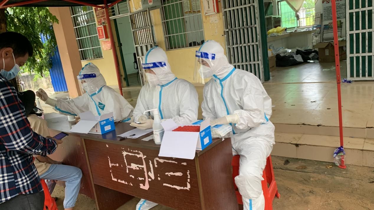 10日晚上11点,终于到达所要支援的陵水英州镇,在组织统一的安排下,到镇上的宾馆休息,凌晨一点给他们分配了支援的任务和对象,他们此次的任务是到英州镇下面的新坡村进行抗疫支援服务工作。