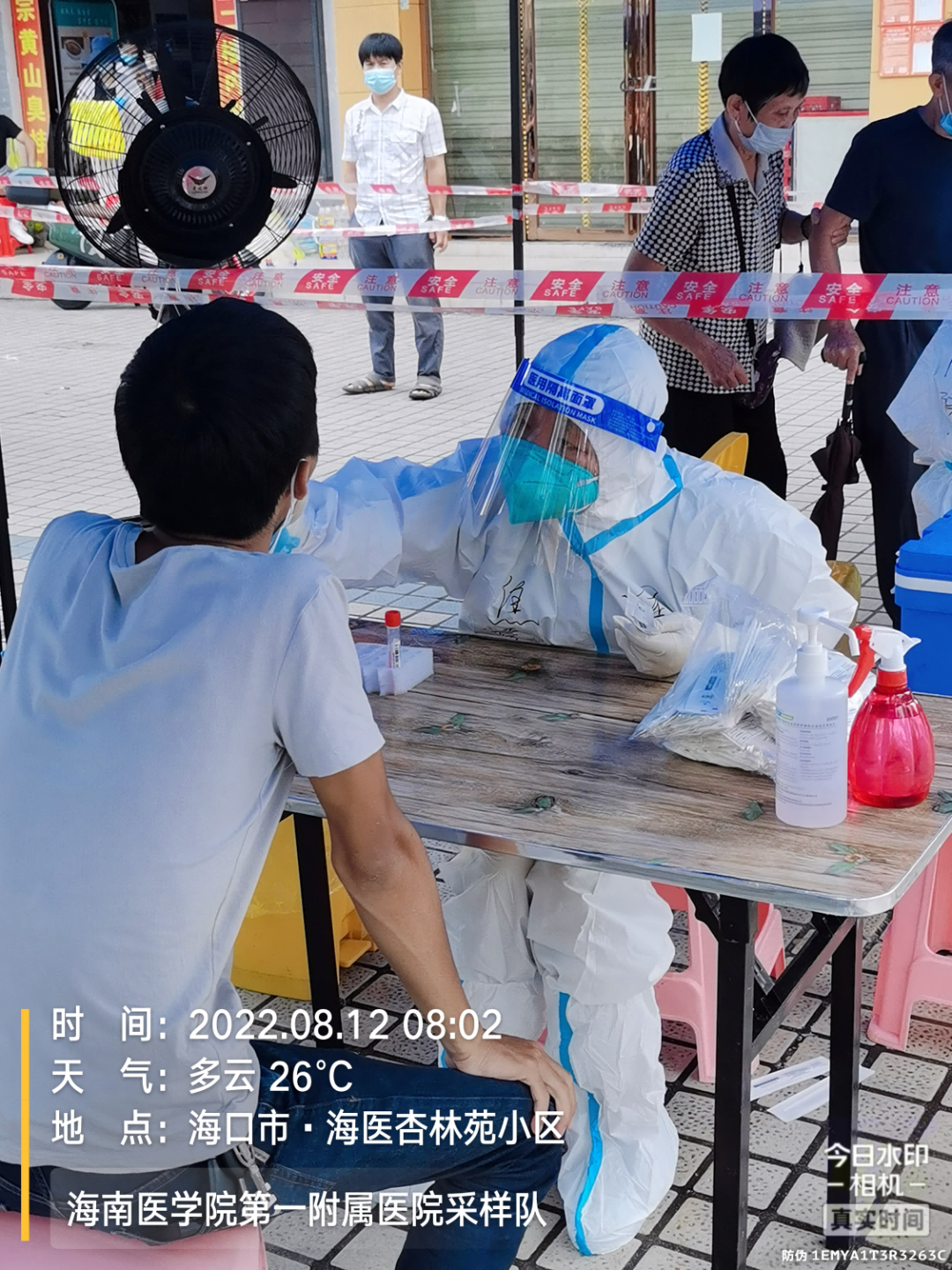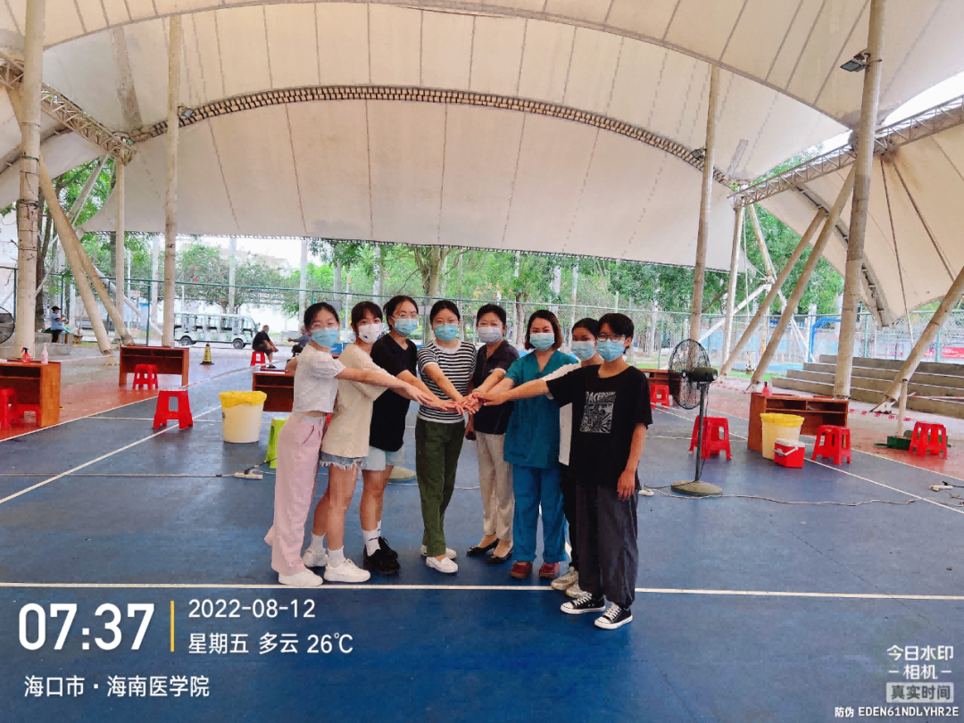 为进一步防范隐匿传播,消除风险隐患,自8月10日起,由我院师生组成的国际护理学院抗疫志愿者服务队持续支援海口市核酸采样任务。8月11日下午3时,由于山高村庙前点位核酸检测人数众多,外加炎热天气,使该采样点负荷过重,得到支援消息后,我院万峰静老师、姜芬老师、琚新梅老师、焦凌梅老师、以及杨雅楼迅速赶到,彼此之间,万众一心,共克时艰。8月11日下午4时在得到