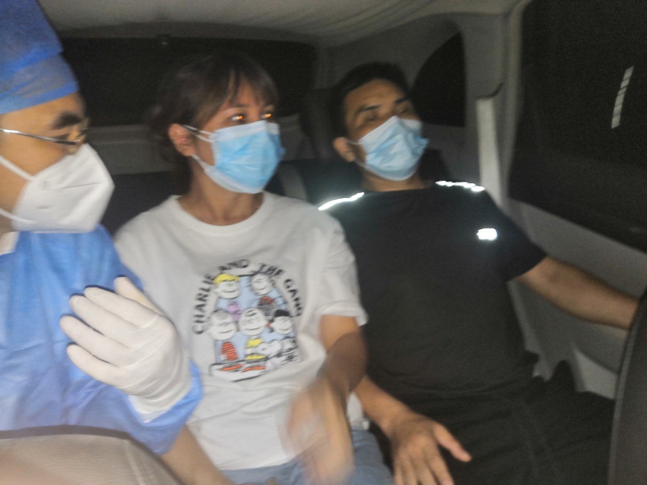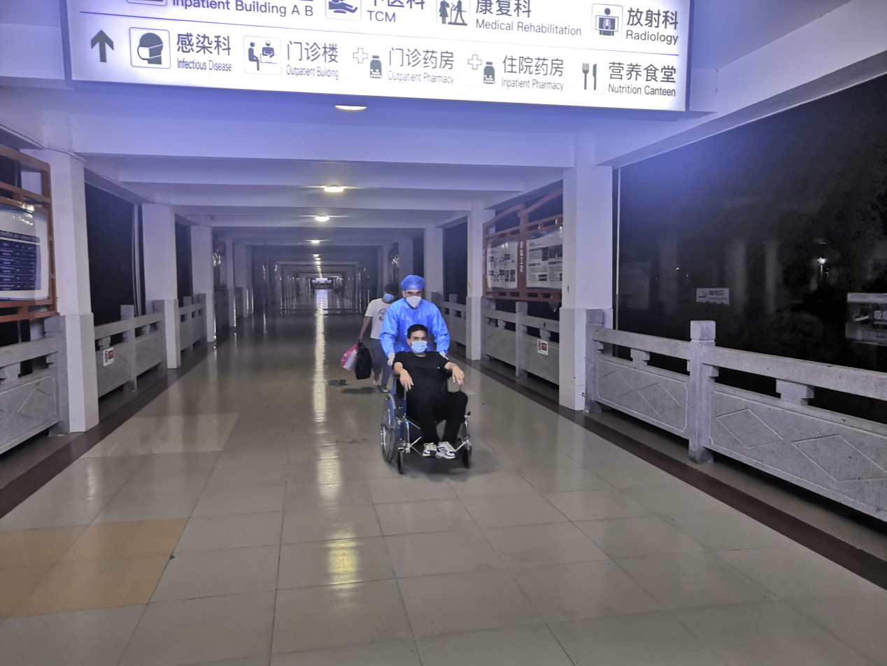 张秀峰教授与红鞋村驻守志愿者立即与家属一起,用警车将病人迅速送到陵水县人民医院。一路上密切观察病人病情变化,安慰病人。22时15分到达医院后,立即用轮椅将患者转移到隔离区就诊。张秀峰教授跟接诊医师谢医师完成交接后,患者收入陵水县人民医院。张秀峰教授并将联系方式提供给家属,便于协助解决后续医疗救治问题。