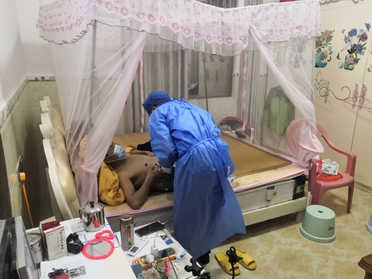 21点10分,我校志愿者张秀峰教授立即做好准备,随车前往病人家中,查看病人。张秀峰教授通过详细病史采集,发现患者目前呼吸困难严重,腹部胀痛明显。经过体格检查发现,病人心率130次/分,呼吸28次/分,双下肺呼吸音低,腹部膨隆,全腹部压痛,无反跳痛。需要立即前往医院就诊。