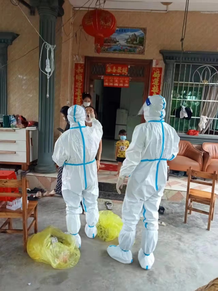 黄奕弟、陈弘维上门为居家隔离村民采样