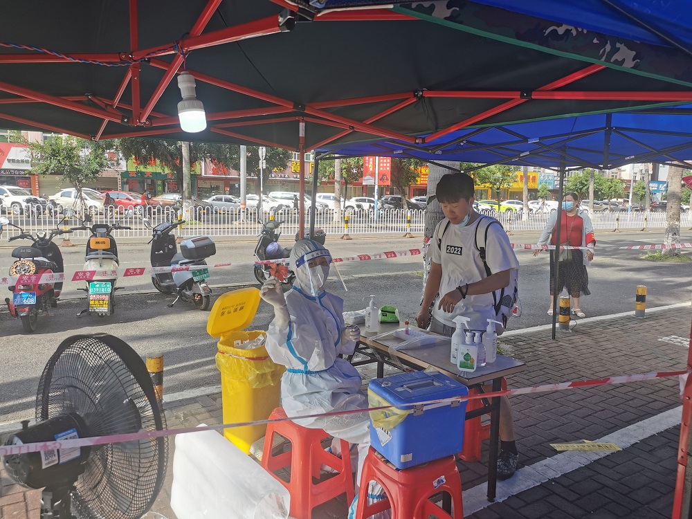 8月13日,在海口昌茂澳洲园的核酸采集现场,采样医务人员洪雪丽遇到了自己的妈妈,她全程只跟母亲说了两句话,分别是“妈妈,是我”“快回去,不要逗留”。