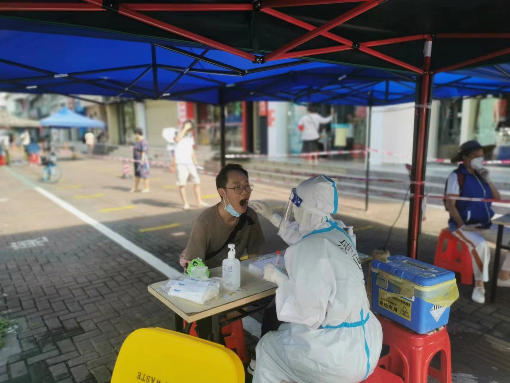 上午刚到点位不久,她没想到自己竟然真的给自己妈妈做了核酸检测。“因为我裹得严严实实的,开始妈妈没有认出我。”洪雪丽说,当她喊出‘妈妈,是我’时,妈妈愣住了,随即马上脱口而出的,是询问她有没有吃早餐。“当妈妈问我吃没吃早餐时,眼泪一下子在眼眶里打转,妈妈最关心的永远是孩子累不累。”
