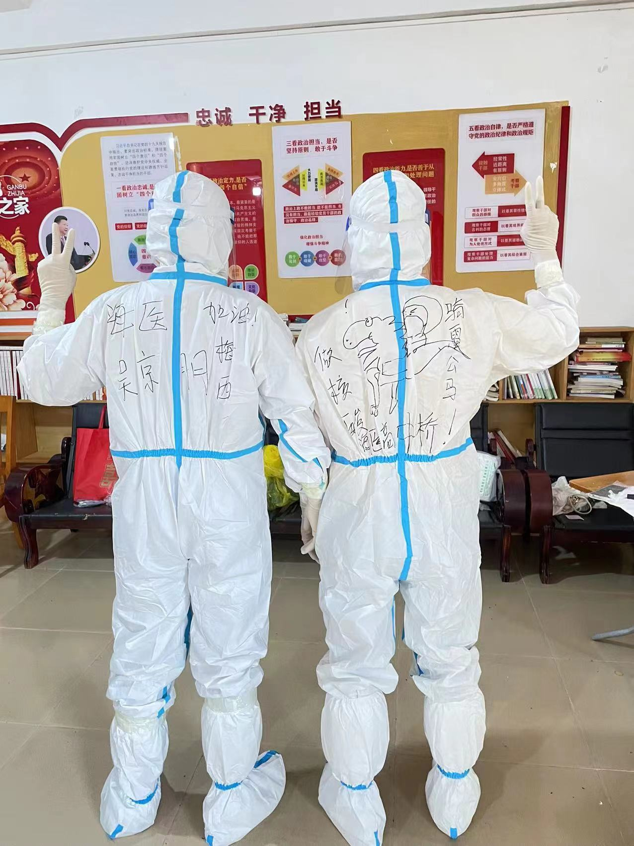 派出的高中桥、吴京朋穿好防护服后,准备出发