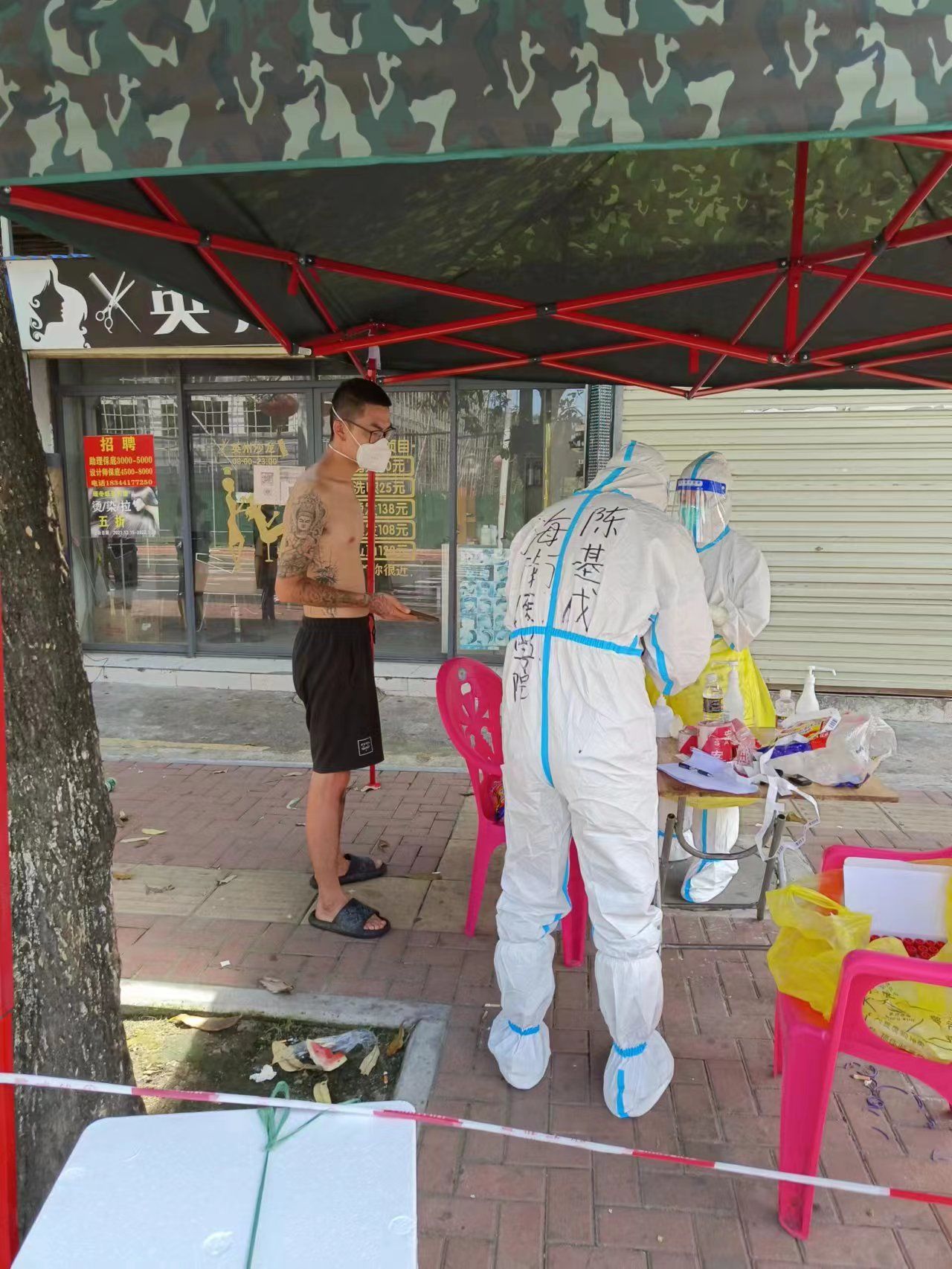 8月13日,支援陵水第4天,骄阳似火,海医志愿者抗击疫情的工作热情同样似火。有了三天的实战经验,21名队友不仅能熟练地完成核酸信息采集工作,还能积极主动参与到其他疫情防控工作。