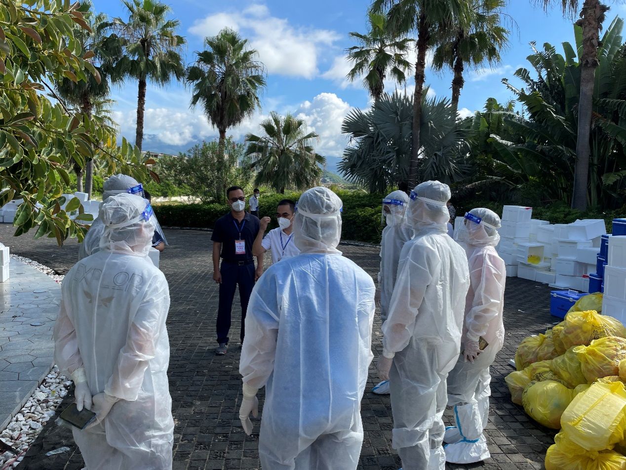 8月12日,张秀峰接到陵水志愿服务中队王开俭中队长通知,立即赶往陵水雅居乐体育馆方舱实验室指导志愿者开展工作。张秀峰首先根据方舱实验室现状和志愿者所从事的工作,制定了方舱实验室志愿者工作流程,规定了各岗位防护级别,设定了各岗位工作路线和流程。