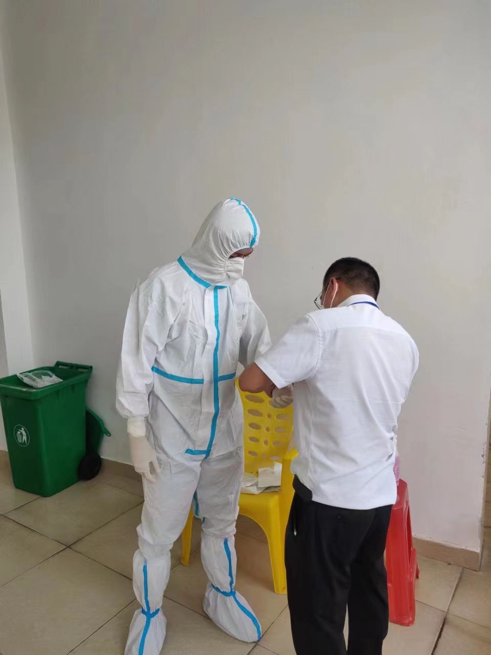 一对一指导志愿者脱防护用具