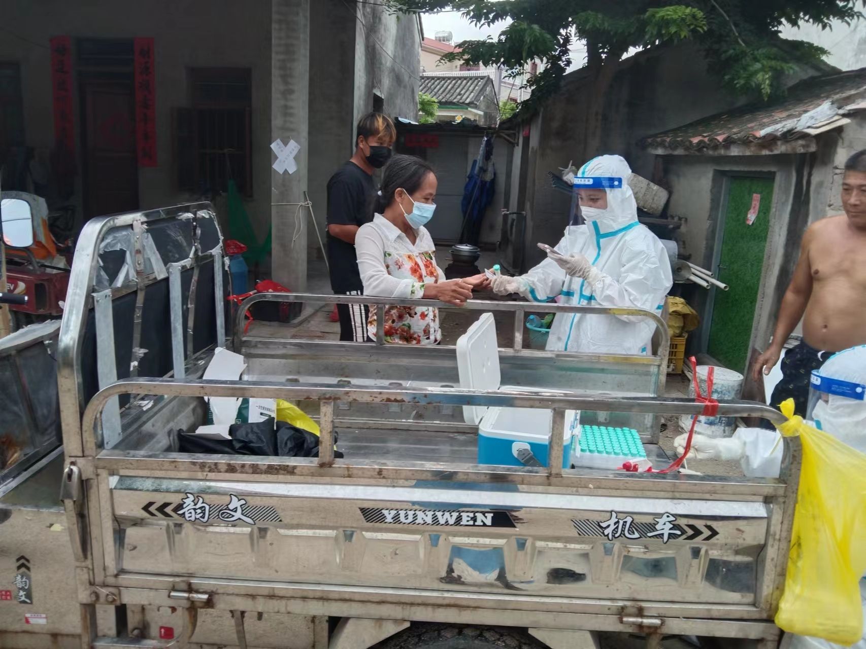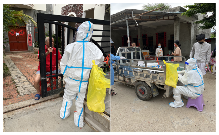 如果说第一天是新手上路,那么接下来几天便是得心应手,从混管到单管采集。无论是与组员合作的默契程度,还是对于入户村民居住的小巷、人数都做到心中有数。哪一户有行动不变的老人家,就拎上采样管进屋不让老人多走一步,哪个片区路口小“三脚蹬”无法进入,就步行入户。有一户人家说大老远只要听见我们喊“出来采核酸”,就算在午休也要马上爬起床。深受感动的是很多村民,做完核酸会真诚的说一声:“谢谢你们”、“你们好辛苦”之类的话,都让我备受鼓舞。