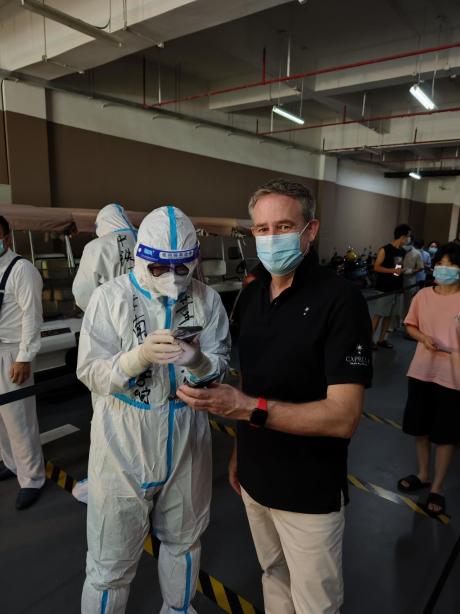 悉心为外籍友人录入核酸采样信息的国际友情;
