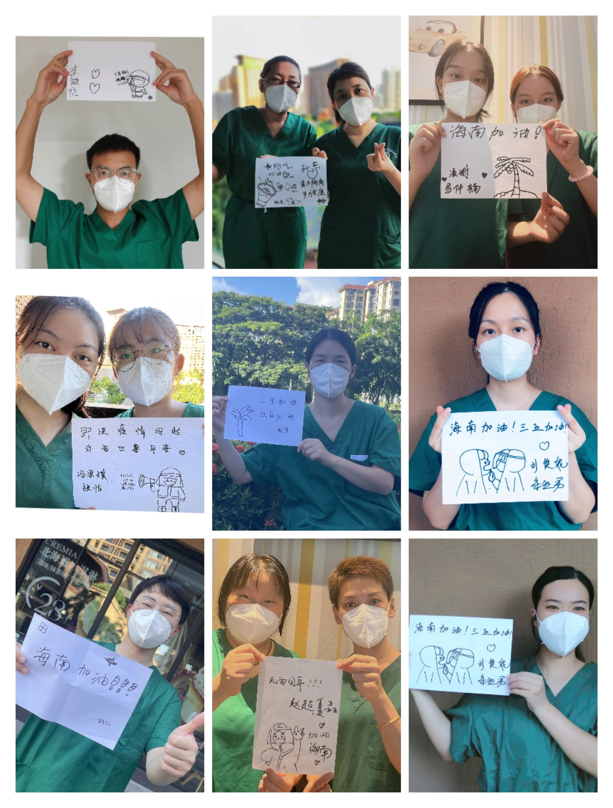 医护人员中,核酸采样队每天天没亮出发,挨家挨户上门采样,做好筛查,流调队披星戴月,调查、摸排,方舱救援队,与病魔斗争、护病人平安,他们身负重任、不辞辛劳,而他们的家人守望在家,即便心里牵挂也不敢打扰他们工作,处理好家庭事务,耐心等待英雄回归。还有无数志愿者,都是海南本地人,他们是采核酸扫码员,与采样队一起爬楼、奔赴前线,是后勤保障员,供应物资、保障后援,是交警,上街巡逻、维护秩序,是大巴司机,为医护人员保驾护航、闭环接送。还有酒店工作人员,马路环卫工人,他们依然恪守在岗位上,默默地为这座城市加油。说英雄谁是英雄?抗疫期间,每一个在自己岗位上尽职尽责的人都是英雄。