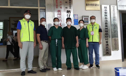 与湖北荆州医疗队在陵水县英州镇鹅仔村合影